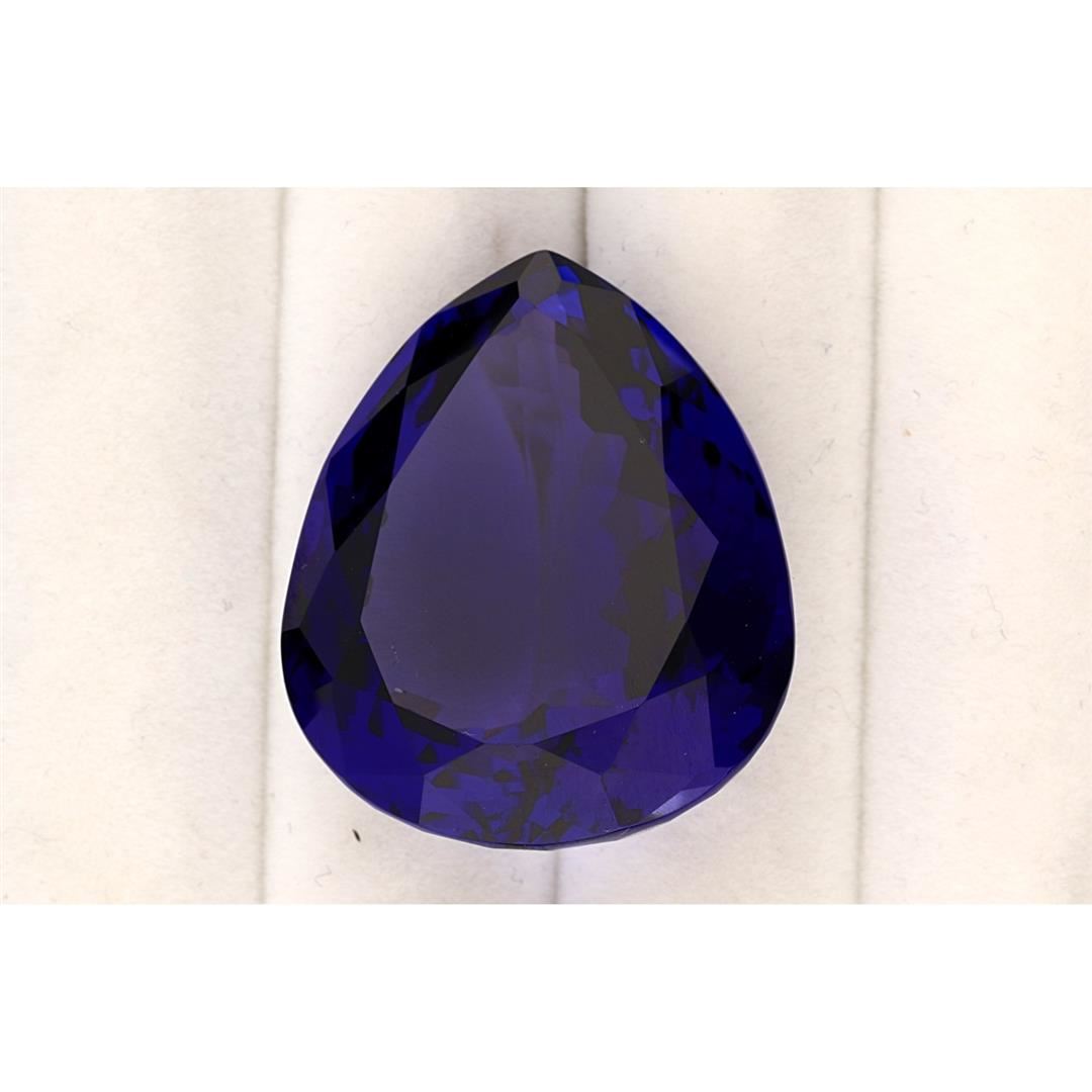 One loose pear shaped cut tanzanite stone, measuring approximately 34mm x 28mm x 16mm and weighing 106.10ct.