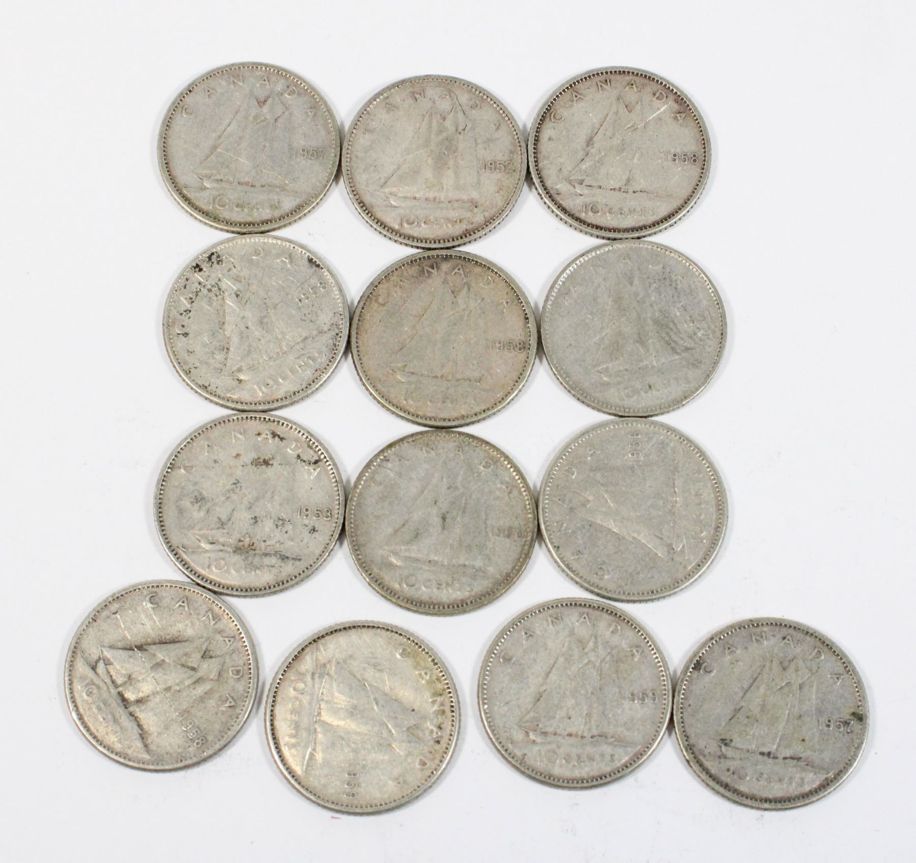 #106 LOT 13 CANADA 10 CENT SILVER DIMES 1950-1959