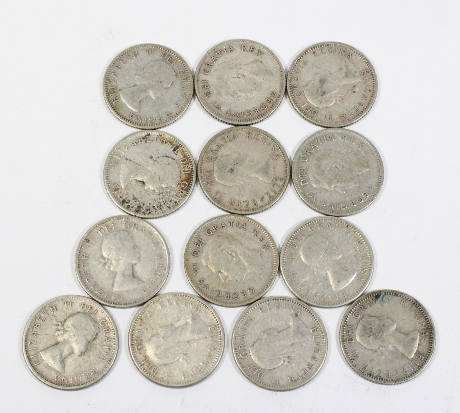 1950 1951 1953 195 1958 1959 LOT OF 13 KING GEORGE V AND QUEEN ELIZABETH II QEII CANADA CANADIAN SILVER COIN CURRENCY 1900'S