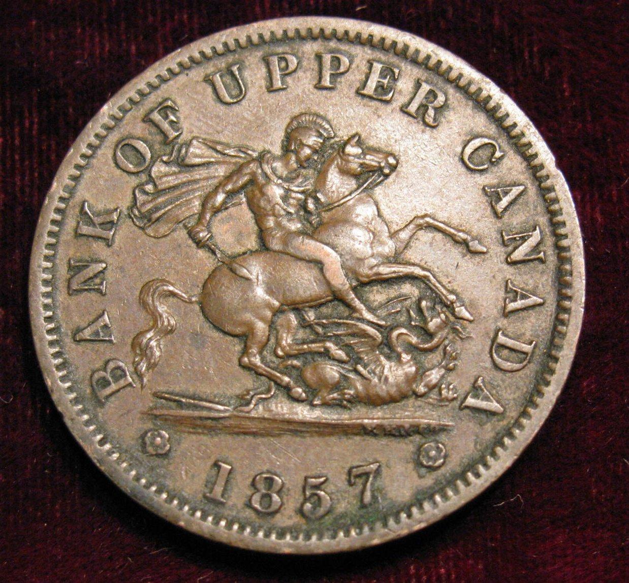 1060. 1857 Canada One-Penny Bank Token. King George Slaying Dragon.