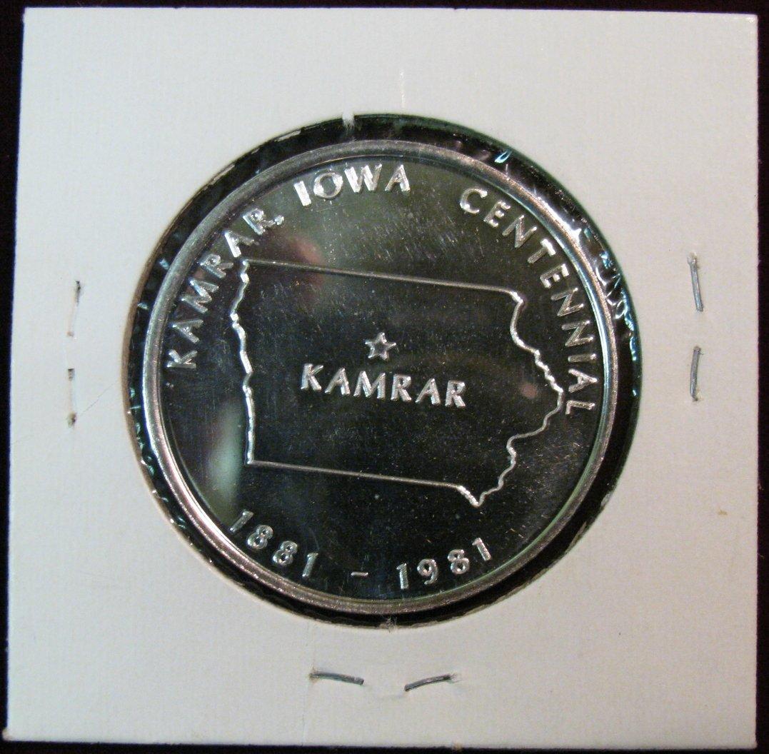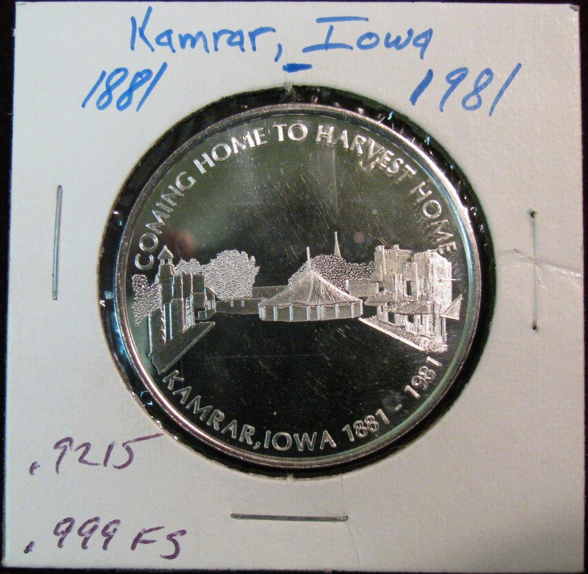 1061. 1881-1981 Kamrar, Ia. .999 Fine Silver Proof Medal. Weighs .9215 oz. Population: 232