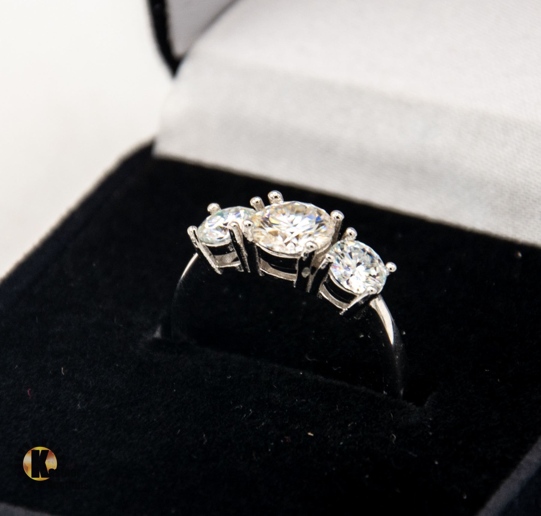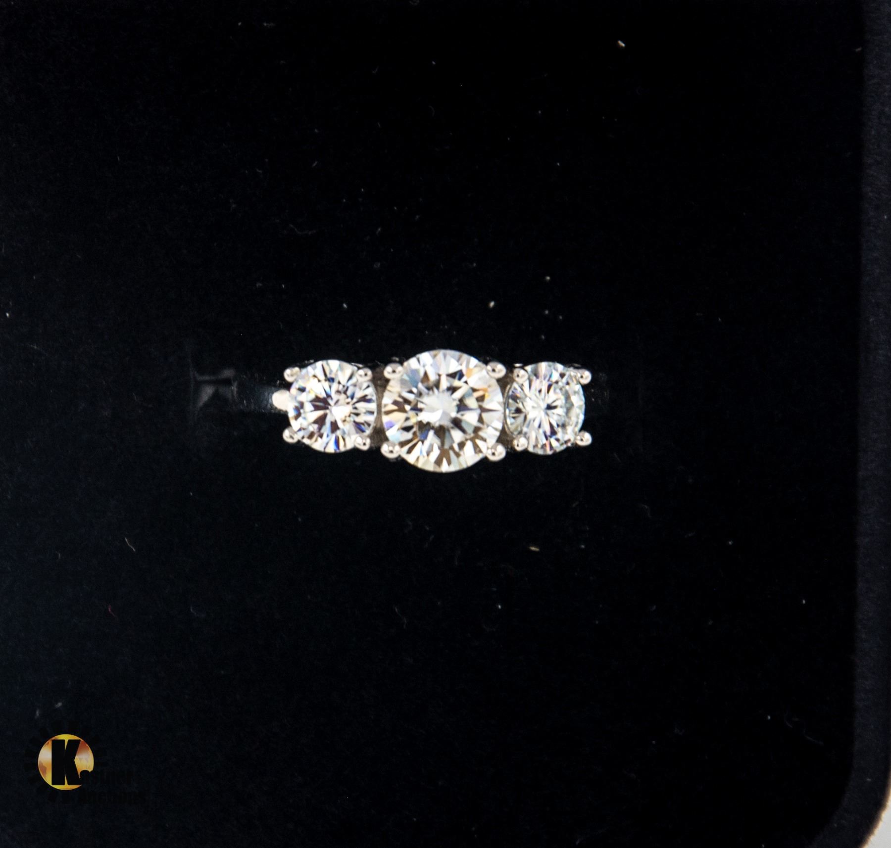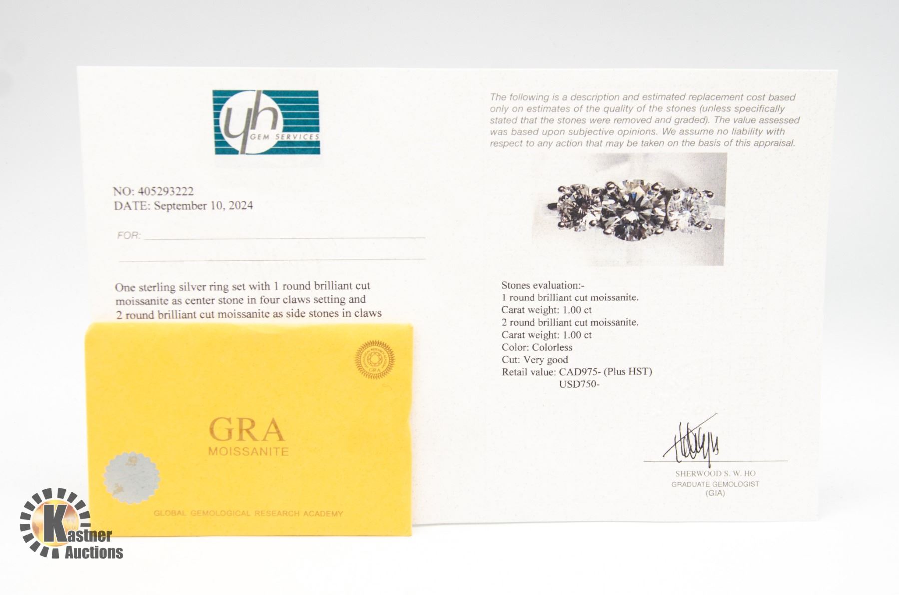 MOISSANITE STONE VVS D COLOR WITH 1.00 CT SET IN CENTER WITH 2 X 0.50 CT MOISSANITE STONES SET ON EITHER SIDE SET IN 925 SILVER RING SIZE 7.25 RETAIL VALUE $975.00 **ALL ITEMS MUST BE REMOVED BY 5PM SATURDAY, DECEMBER 7TH 2024. ALL REMAINING ITEMS WILL BE SUBJECT TO A $6.00 PER DAY STORAGE CHARGE. ANY ITEMS REMAINING AFTER MONDAY, DECEMBER 23RD 2024 WILL BE CONSIDERED FORFEITED. NO REFUNDS WILL BE ISSUED FOR FORFEITED ITEMS. TO SCHEDULE A PICK UP APPOINTMENT CLICK HERE
