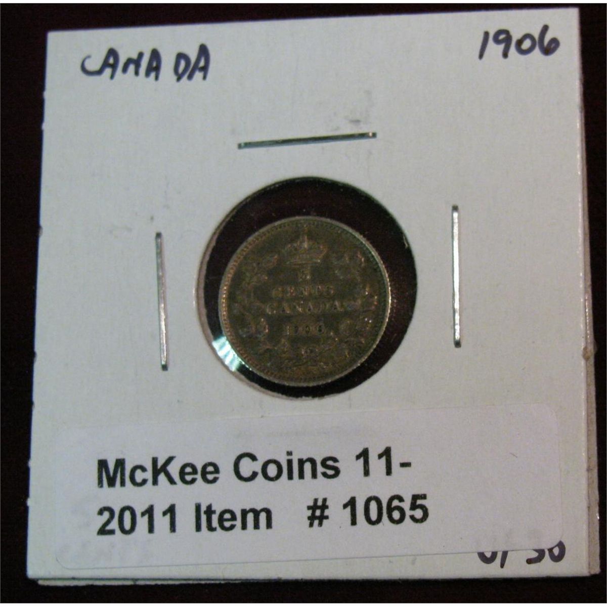 1065. 1906 Canada 5-Cent Silver VF-30. Est. $15.00