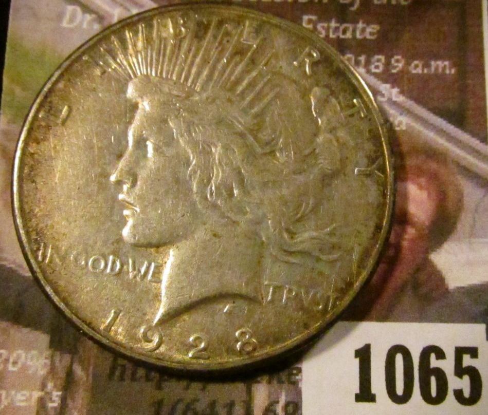 1065 . 1928-S Peace Silver Dollar, VF, better date, value $39