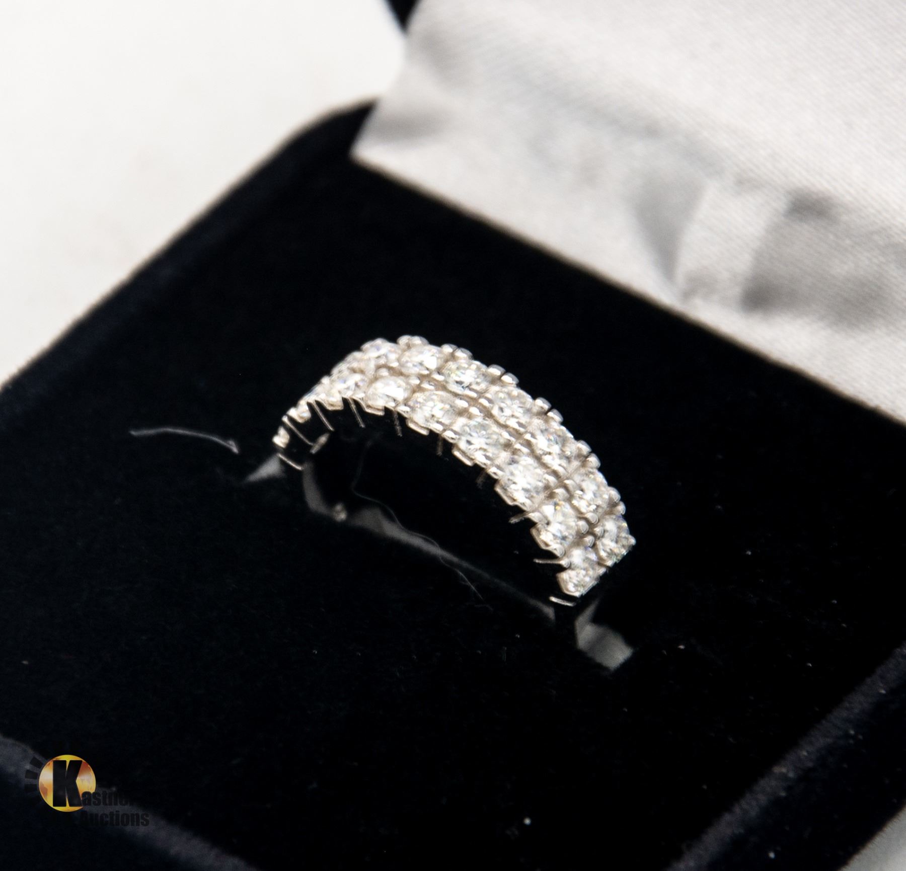 MOISSANITE STONE VVS D COLOR WITH THE 18 STONES SET IN 925 SILVER RETAIL VALUE $900.00 RING SIZE 6 **ALL ITEMS MUST BE REMOVED BY 5PM SATURDAY, DECEMBER 7TH 2024. ALL REMAINING ITEMS WILL BE SUBJECT TO A $6.00 PER DAY STORAGE CHARGE. ANY ITEMS REMAINING AFTER MONDAY, DECEMBER 23RD 2024 WILL BE CONSIDERED FORFEITED. NO REFUNDS WILL BE ISSUED FOR FORFEITED ITEMS. TO SCHEDULE A PICK UP APPOINTMENT CLICK HERE