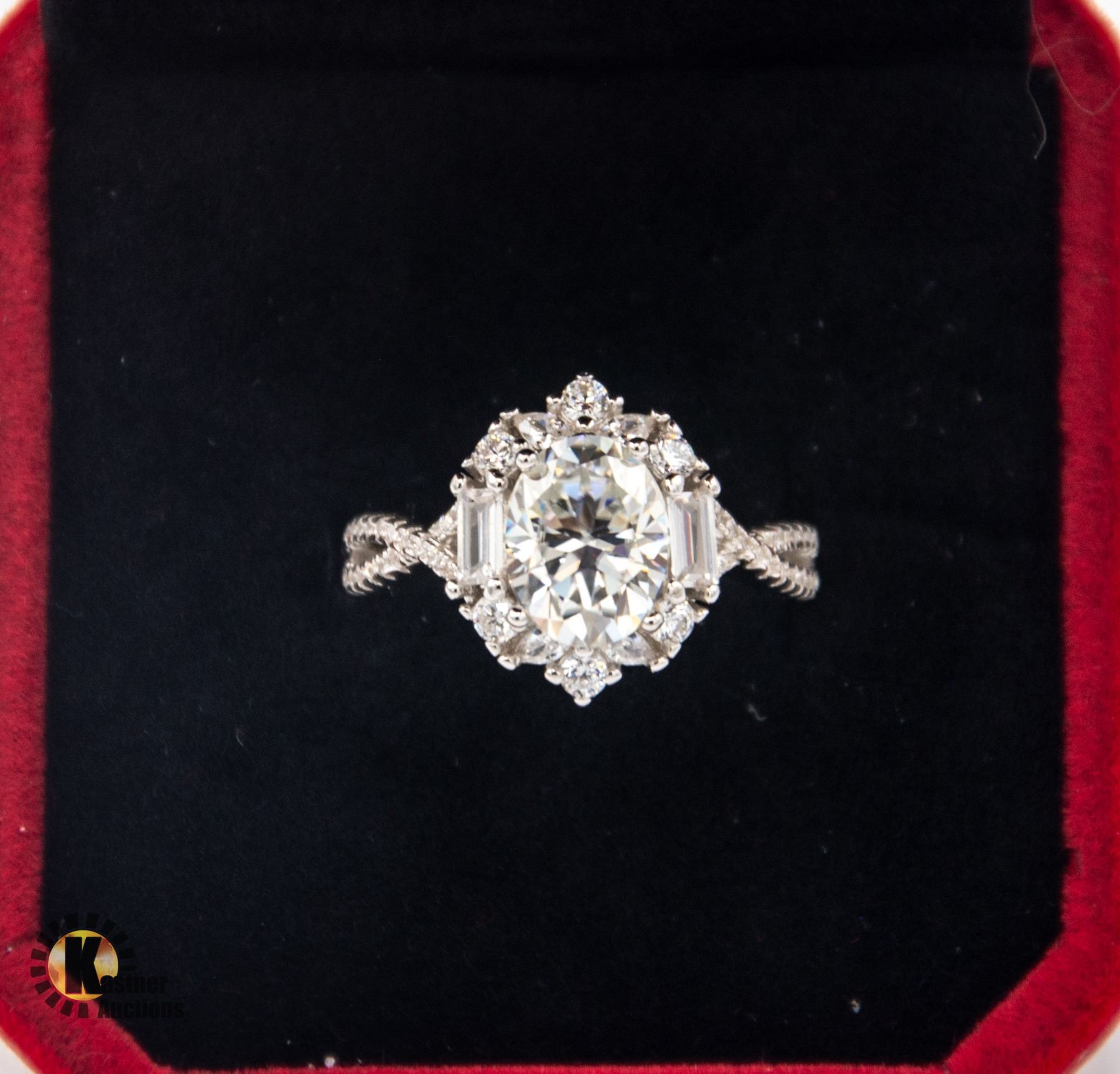 STONE VVS D COLOR SET WITH BAGUETTE SHAPED CZ WITH 4 MARQUISE SHAPED CZS WITH 3 LARGER ROUND BRILLIANT CUT CUBIC ZIRCONIA WITH NUMEROUS CZS SET IN SHOULDER OF RING SIZE 7 SET IN 925 SILVER