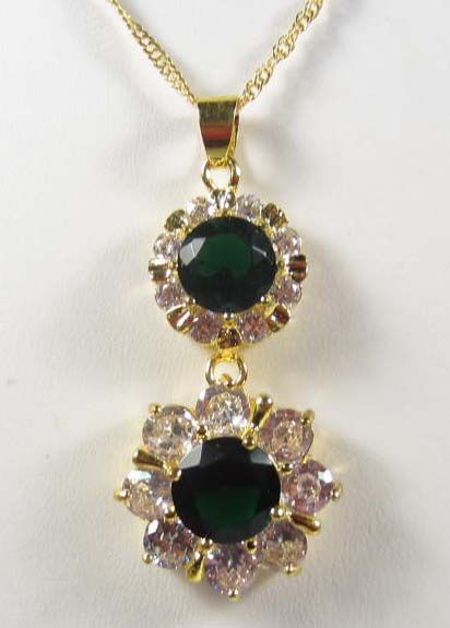 10667 - GOLD PLATED EMERALD & WHITE TOPAZ PENDANT W/ CHAIN