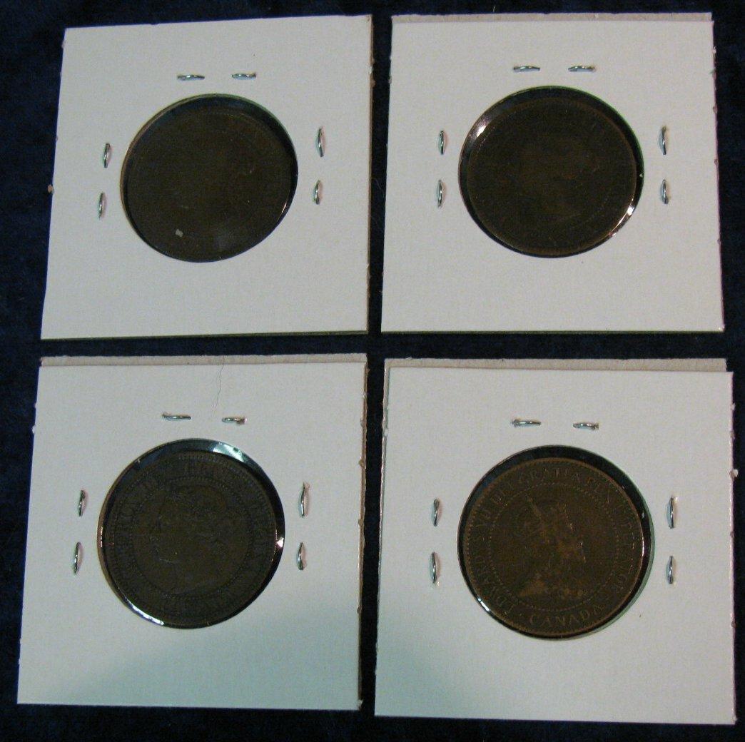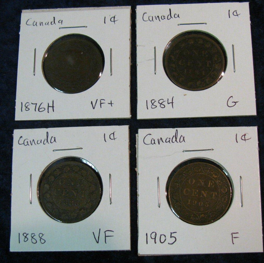 1067. 1876H VF+. 1884 G, 1888 VF, & 1905 F Canada Large Cents.