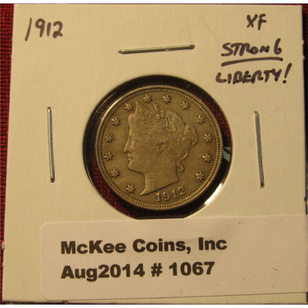 1067. 1912 V Nickel XF STRONG LIBERTY!