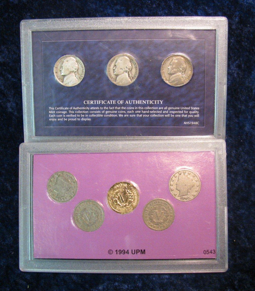 1067. (5) Liberty Head Nickels. Including Gold Plated Racketeer & Silver P,D,S War Nickels In Fancy Holders.