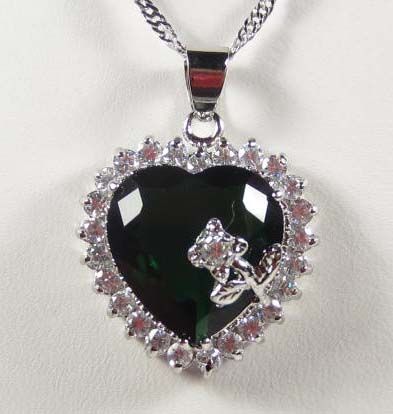 10671 - WHITE GOLD PLATED EMERALD & WHITE TOPAZ PENDANT W/ CHAIN