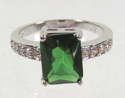10676 - WHITE GOLD PLATED EMERALD & WHITE TOPAZ RING SIZE 7