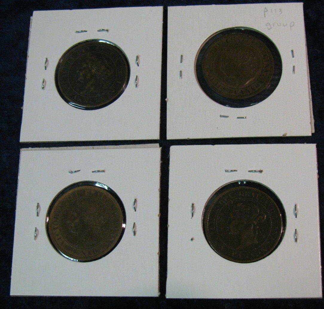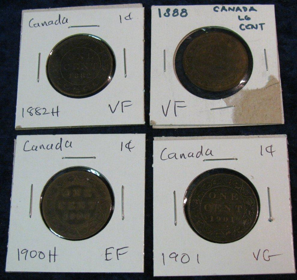 1068. 1882H VF, 88 VF, 1900H EF, & 01 VG Canada Large Cents.