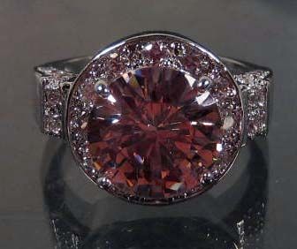 10687 - WHITE GOLD PLATED PINK SAPPHIRE & WHITE TOPAZ RING SIZE 7