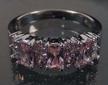 10688 - WHITE GOLD PLATED PINK SAPPHIRE & WHITE TOPAZ RING SIZE 6