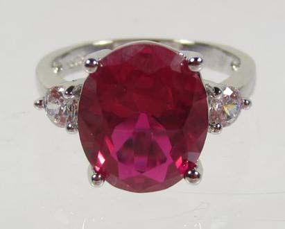 10689 - WHITE GOLD PLATED RUBY & WHITE TOPAZ RING SIZE 8
