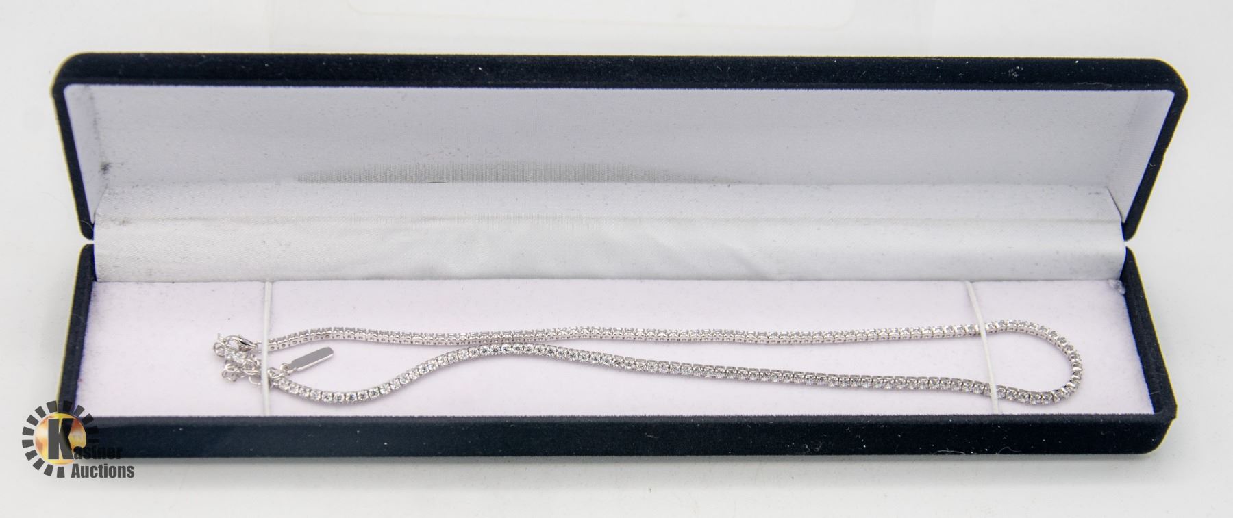 STONES MEASURING AN AVERAGE 2 MM FOR A TOTAL 10.8 CTS TOTAL SET IN 925 SILVER NECKLACE **ALL ITEMS MUST BE REMOVED BY 5PM SATURDAY, DECEMBER 7TH 2024. ALL REMAINING ITEMS WILL BE SUBJECT TO A $6.00 PER DAY STORAGE CHARGE. ANY ITEMS REMAINING AFTER MONDAY, DECEMBER 23RD 2024 WILL BE CONSIDERED FORFEITED. NO REFUNDS WILL BE ISSUED FOR FORFEITED ITEMS. TO SCHEDULE A PICK UP APPOINTMENT CLICK HERE