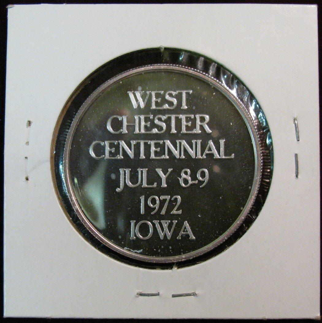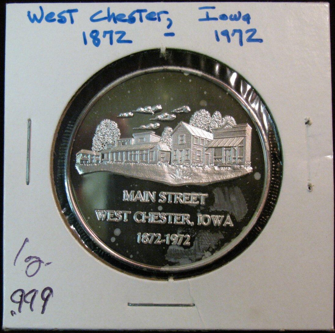 1069. 1872-1972 West Chester, Iowa One Ounce .999 Fine Silver. Serial no. 081. Population: 148