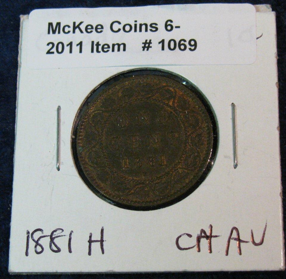 1069. 1881 H Choice AU Canada Large Cent.