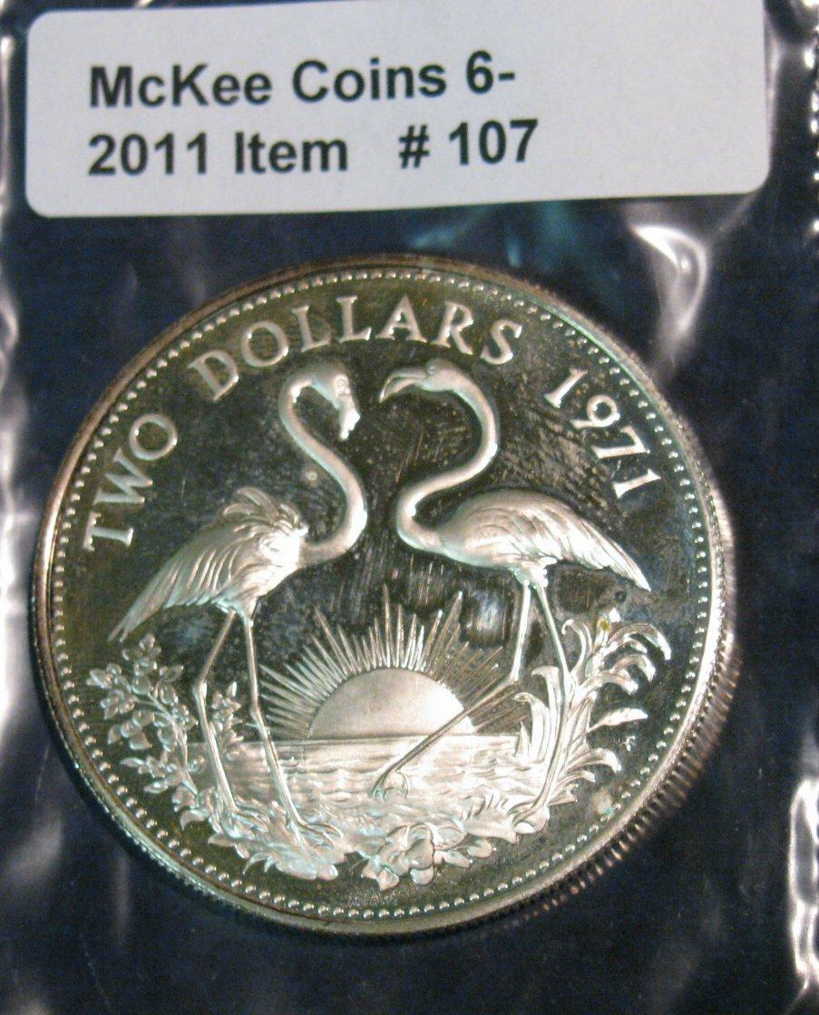 107. 1971FM Bahamas Silver Two Dollar. Proof. Rare 60,000 mtg.
