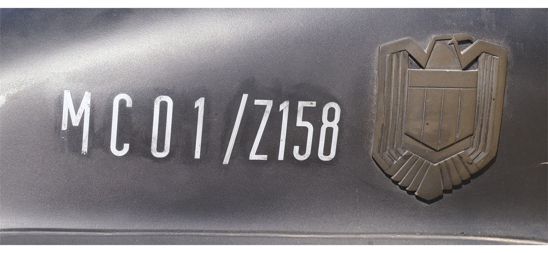 DREDD (2012) - Lawmaster Motorcycle - A Lawmaster motorcycle from Pete Travis' Dredd. Judges drove their high-tech Lawmaster motorcycles while chasing perpetrators in Mega-City One throughout the film, including those Judge Dredd (Karl Urban) and Cassandra Anderson (Olivia Thirlby) passed at the Grand Hall of Justice. Dredd and Anderson operated bikes of the same style throughout the film.