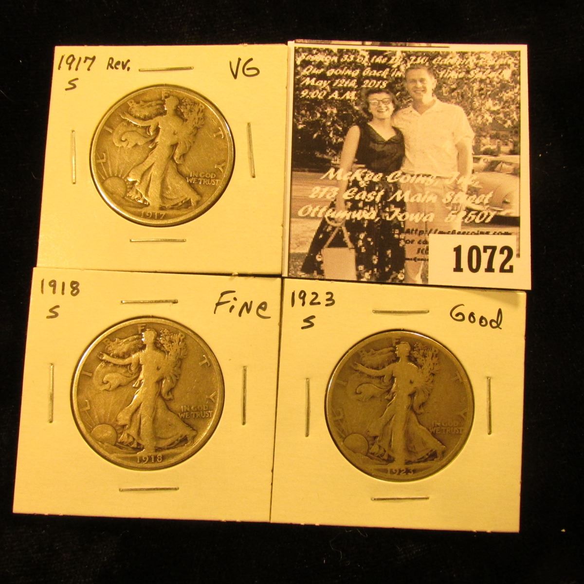 1072 . 1917 Reverse S VG, 18 S Fine, & 23 S Good U.S. Walking Liberty Half Dollars.
