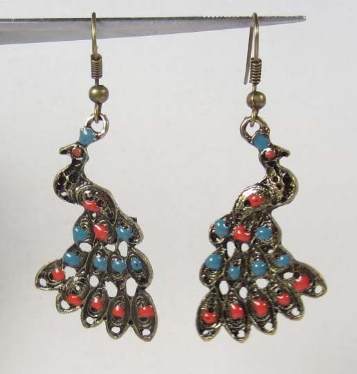 10734 - PAIR OF BRONZE PEACOCK EARRINGS
