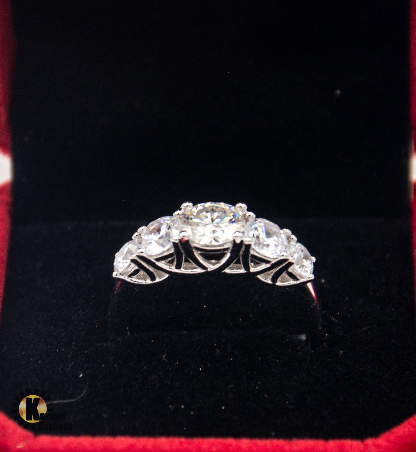 MOISSANITE STONE VVS D COLOR WITH 2 GRADUATING ROUND BRILLIANT CUBIC ZIRCONIA SET ON EITHER CENTER SET IN 925 SILVER RING SIZE 8