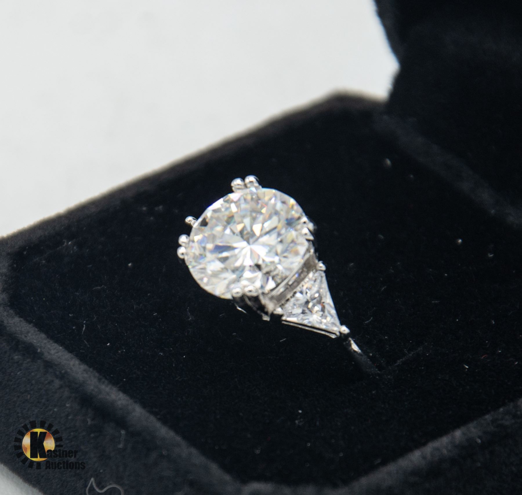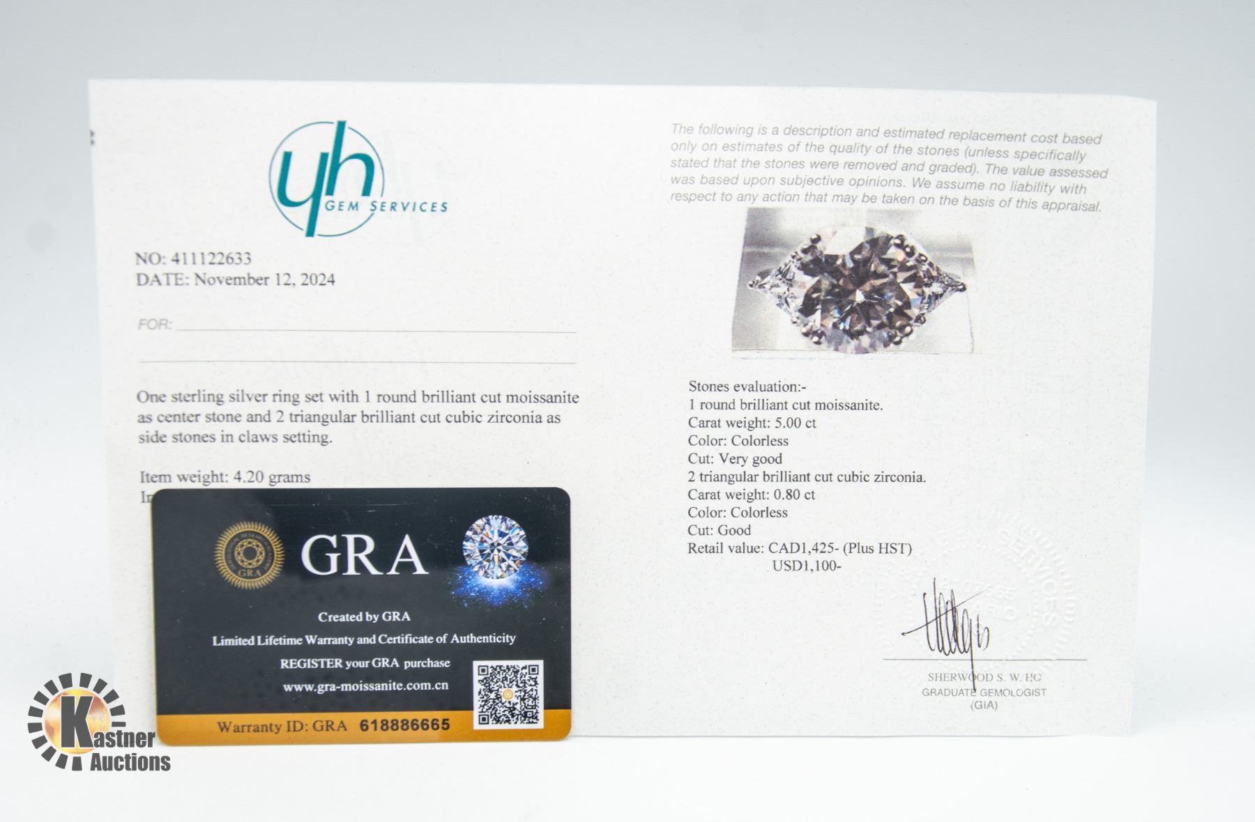 MOISSANITE STONE VVS D COLOR WITH 2 TRIANGULAR BRILLIANT CUT CZ’S SET IN 925 SILVER RING SIZE 9 RETAIL VALUE $1,425.00 **ALL ITEMS MUST BE REMOVED BY 5PM SATURDAY, NOVEMBER 30TH 2024. ALL REMAINING ITEMS WILL BE SUBJECT TO A $6.00 PER DAY STORAGE CHARGE. ANY ITEMS REMAINING AFTER MONDAY, DECEMBER 16TH 2024 WILL BE CONSIDERED FORFEITED. NO REFUNDS WILL BE ISSUED FOR FORFEITED ITEMS. TO SCHEDULE A PICK UP APPOINTMENT CLICK HERE