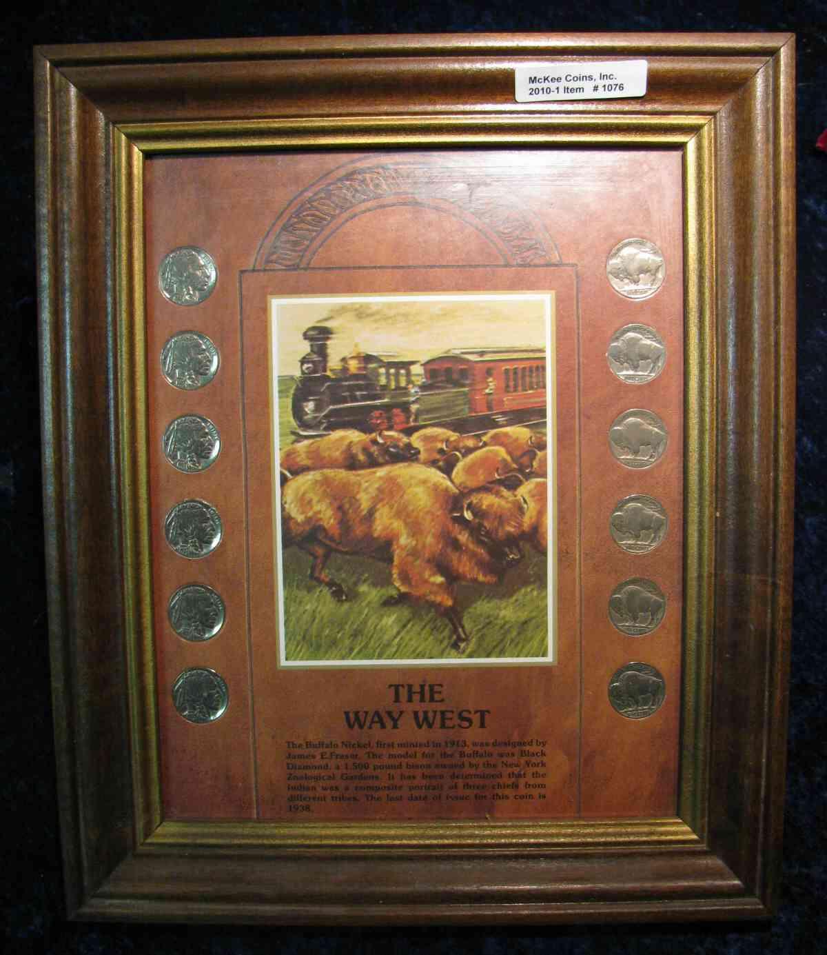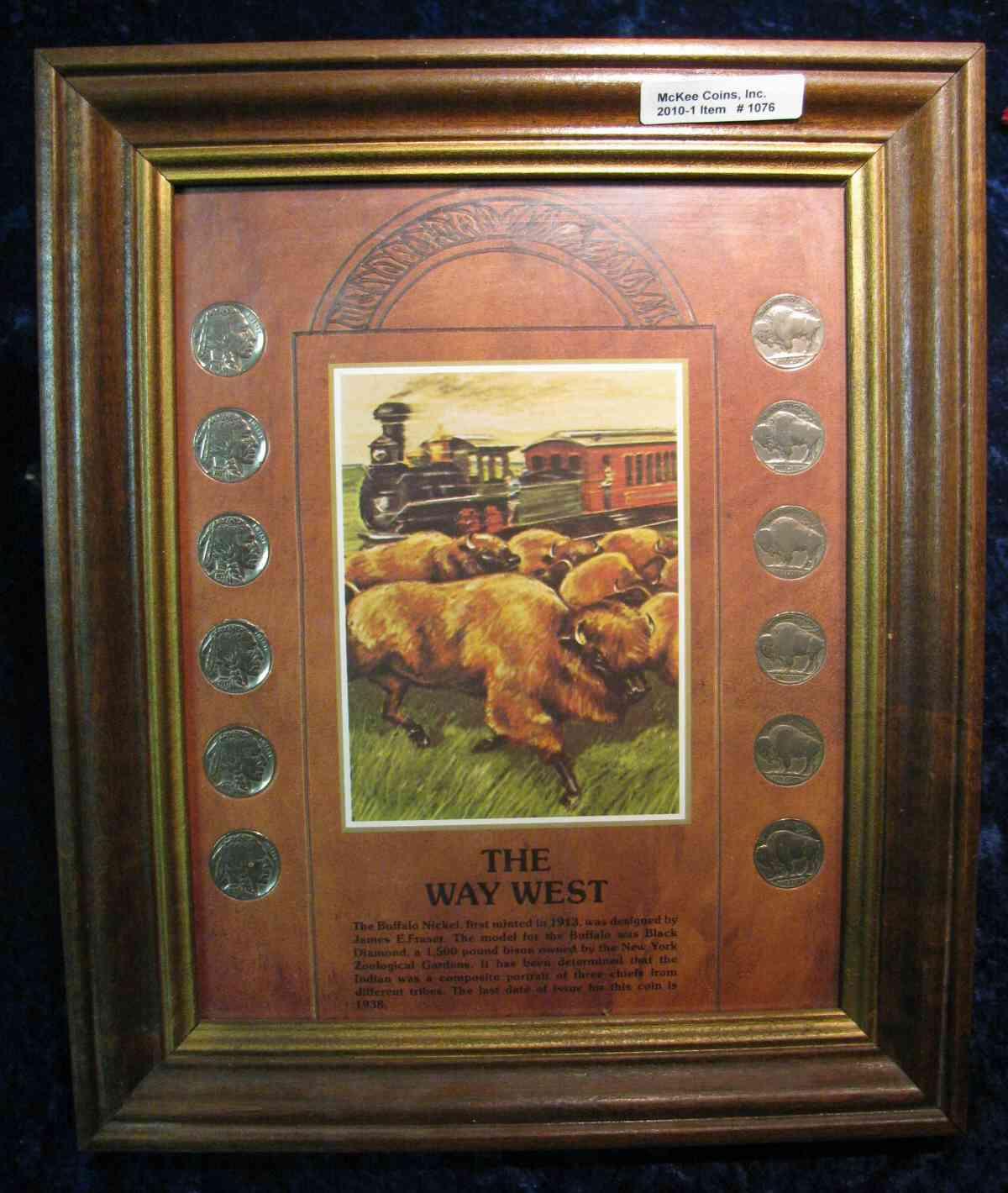 1076. The Way West. Frame with (12) Buffalo Nickels.