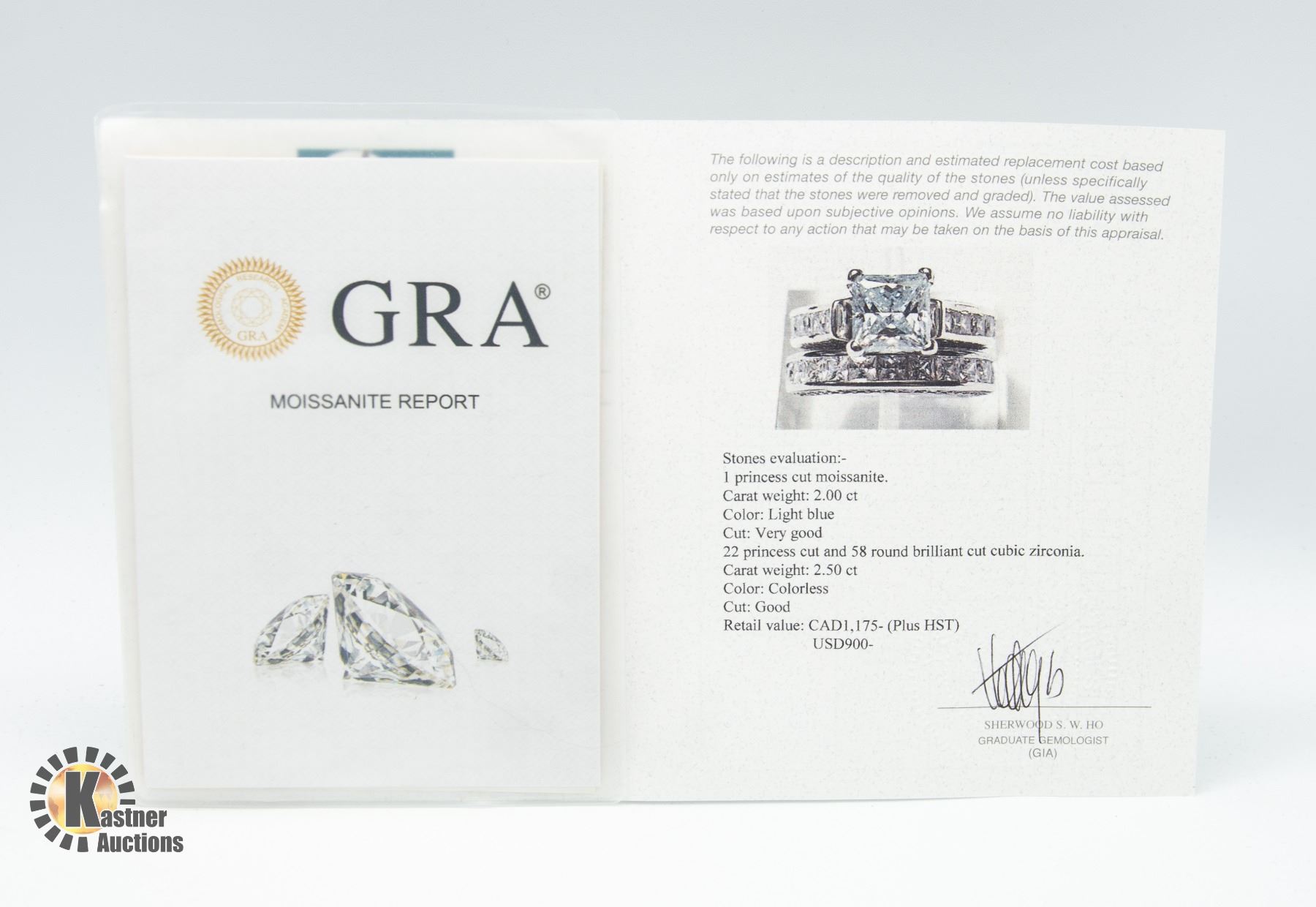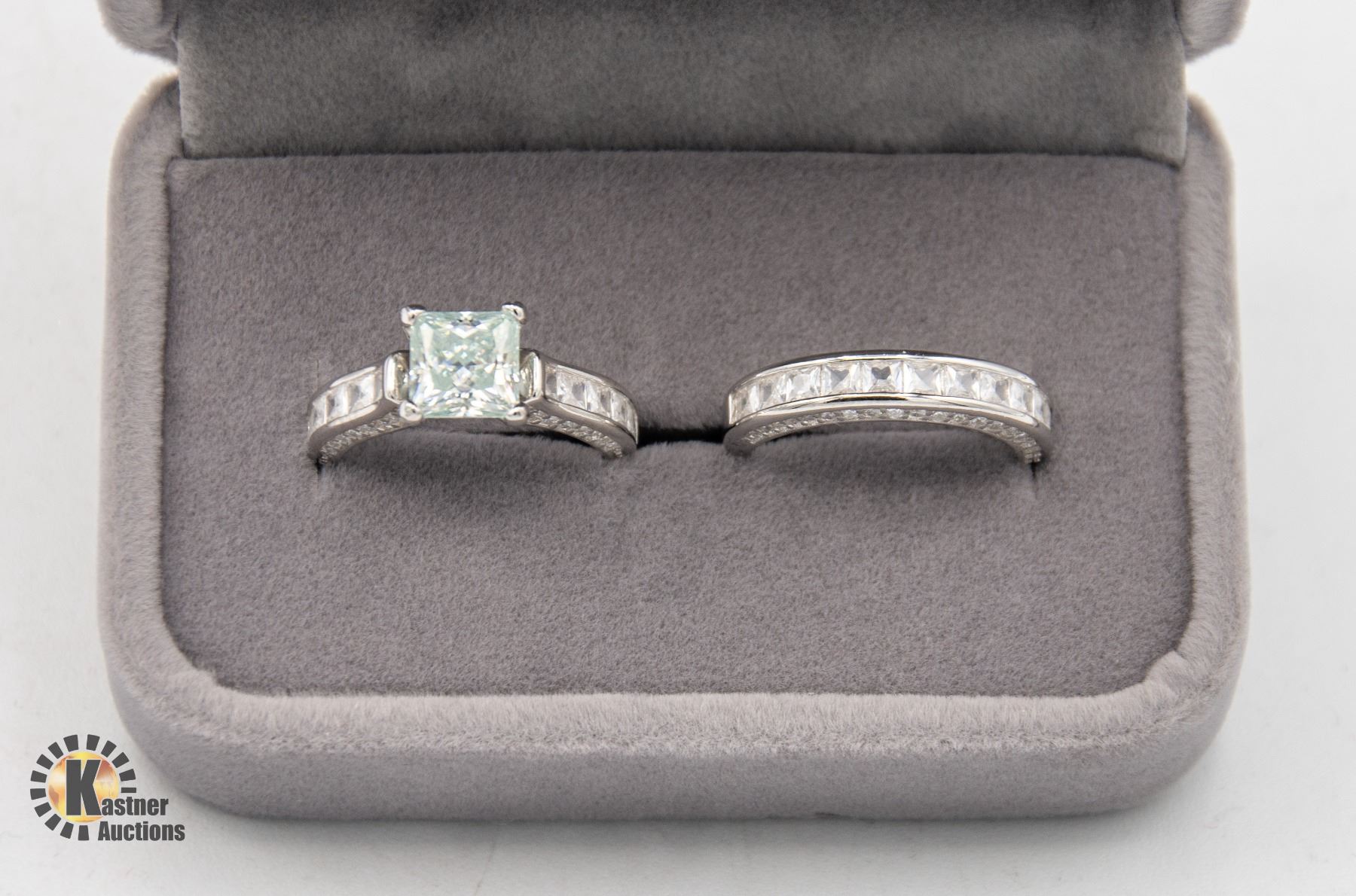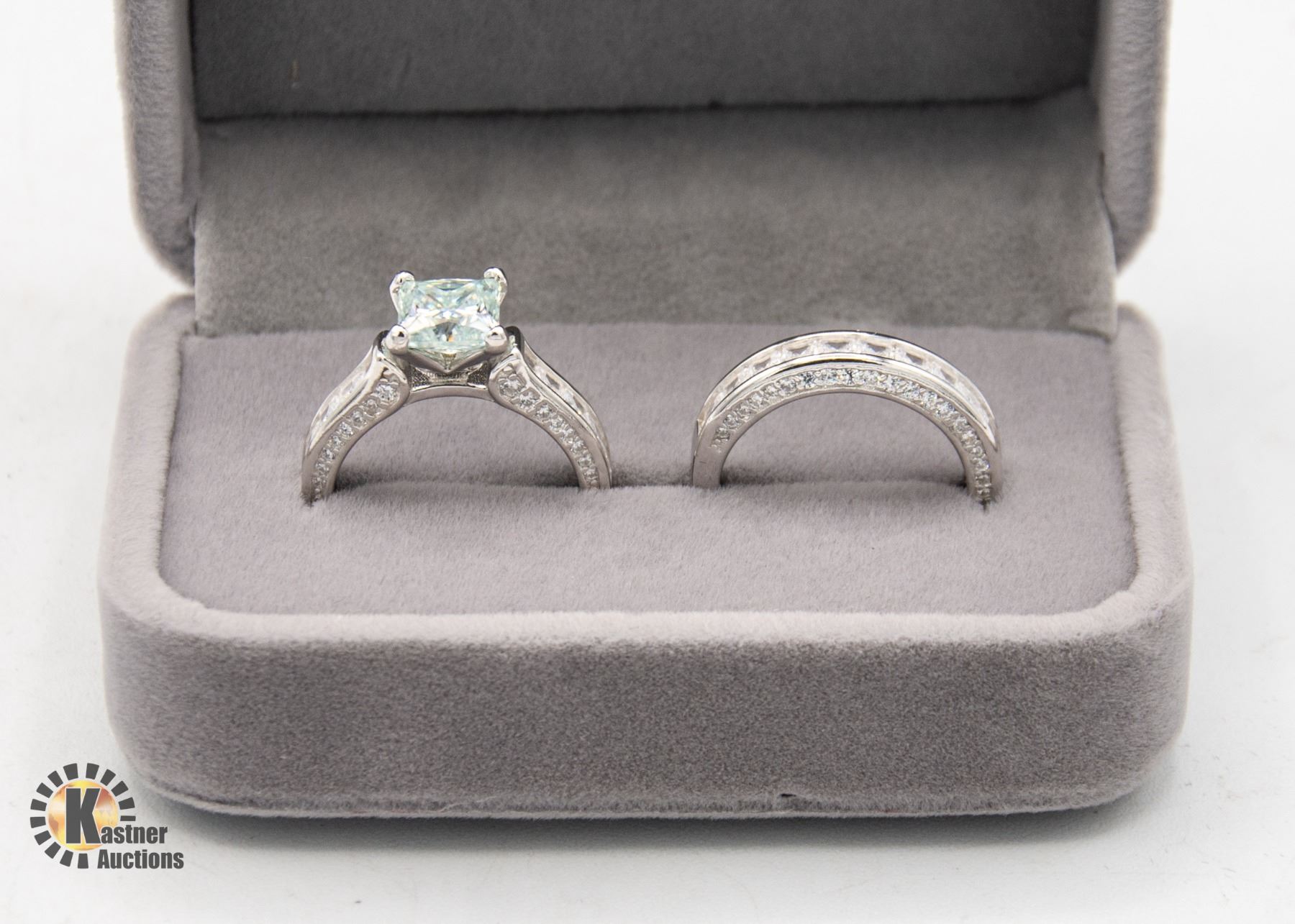 CUT MOISSANITE STONE VVS D COLOR SET IN CENTER WITH 22 PRINCESS CUT CZ’S SET IN BOTH RINGS WITH 58 ROUND BRILLIANT CUT CZ’S SET IN BOTH RINGS SET IN 925 SILVER RING SIZE 7 RETAIL VALUE $1,175.00 **ALL ITEMS MUST BE REMOVED BY 5PM SATURDAY, NOVEMBER 30TH 2024. ALL REMAINING ITEMS WILL BE SUBJECT TO A $6.00 PER DAY STORAGE CHARGE. ANY ITEMS REMAINING AFTER MONDAY, DECEMBER 16TH 2024 WILL BE CONSIDERED FORFEITED. NO REFUNDS WILL BE ISSUED FOR FORFEITED ITEMS. TO SCHEDULE A PICK UP APPOINTMENT CLICK HERE