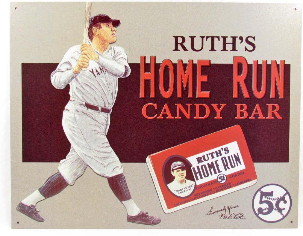 1079 - BABE RUTH'S HOME RUN CANDY BAR METAL ADVERTISING SIGN - 12.5 X 16,