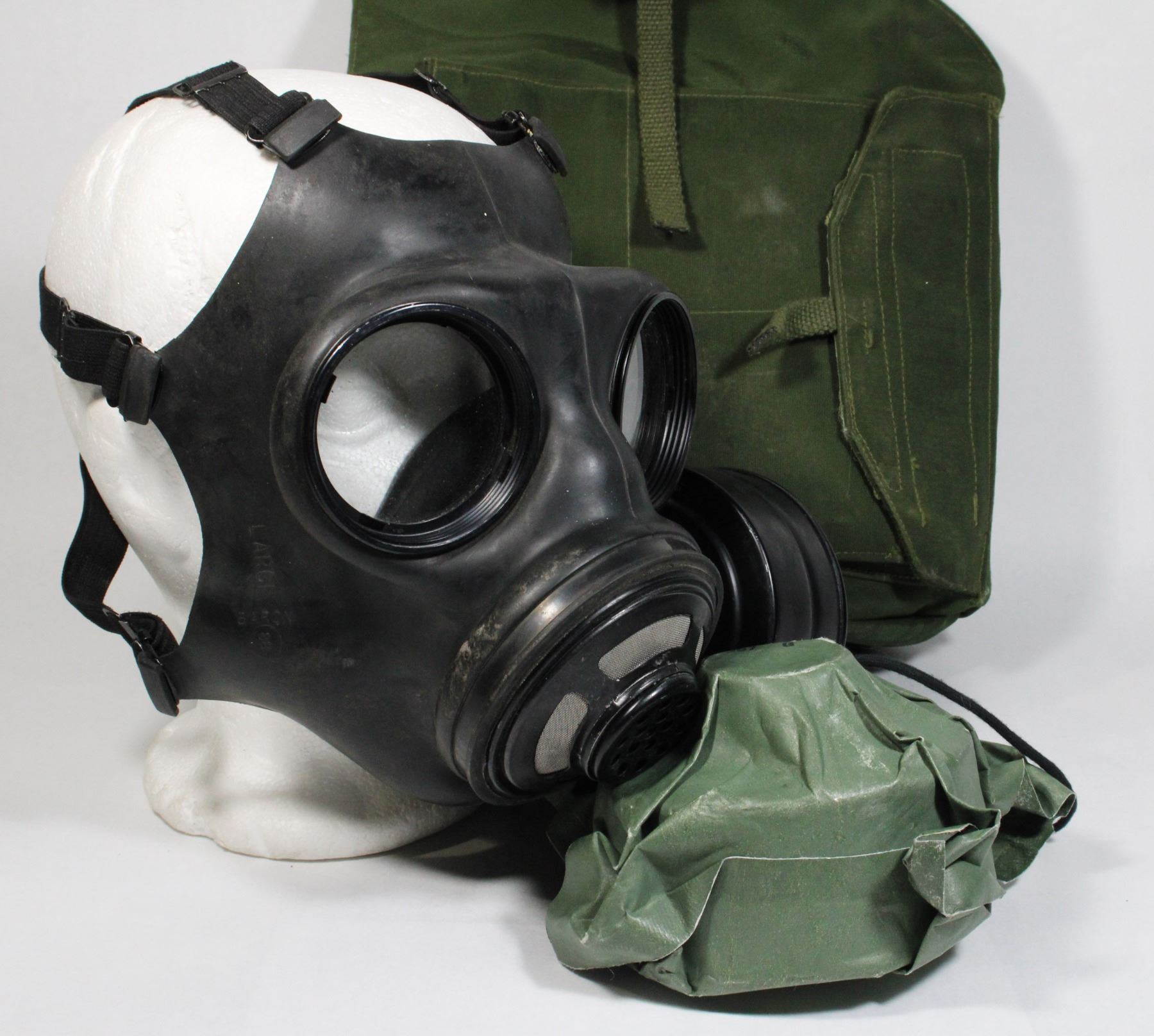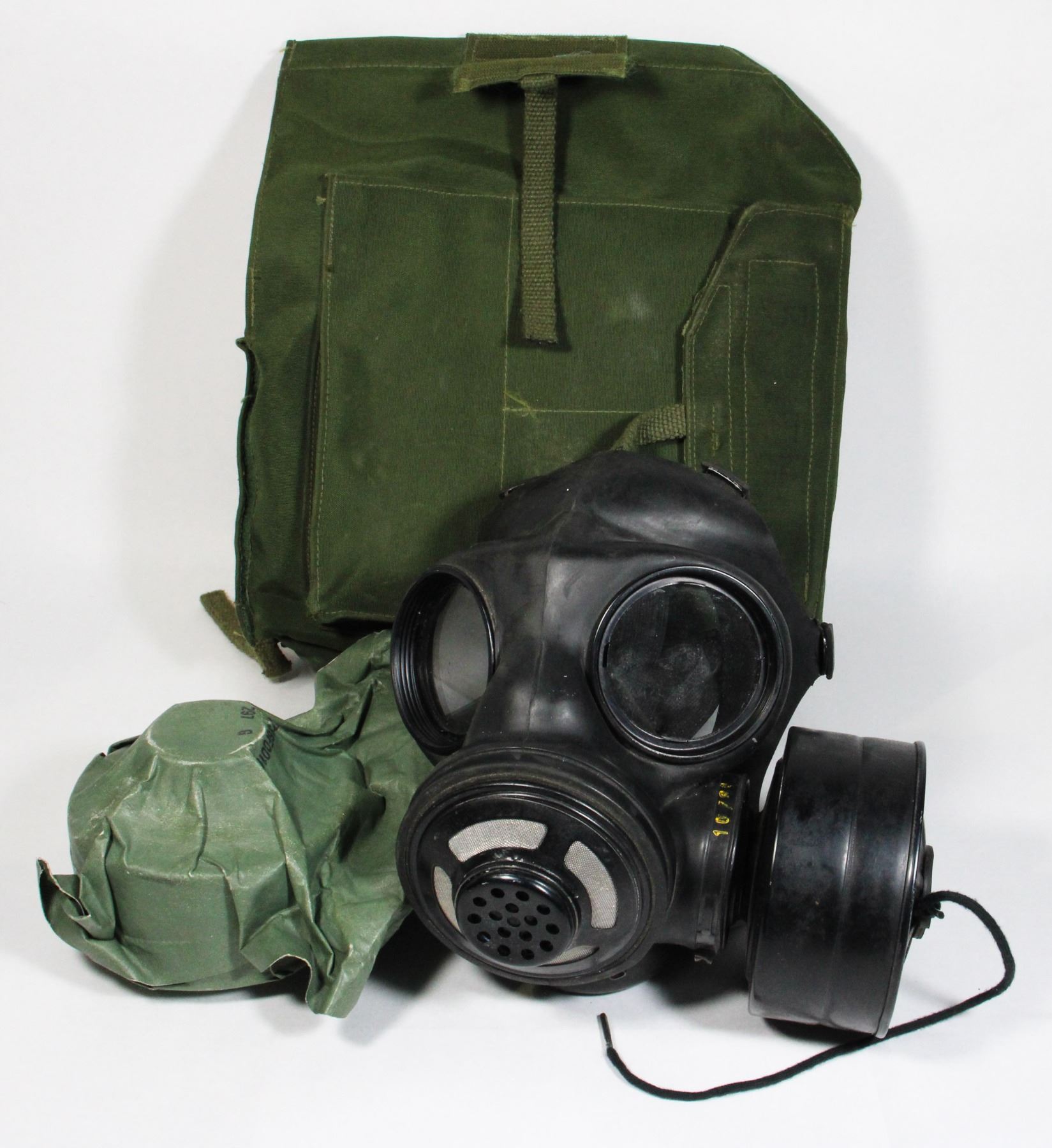 INCLUDES SEALED CANADIAN GAS MASK CANNISTER AND BAG MARKED CM7N CANADA MILITARY ARMED FORCES ALLIED FORCES