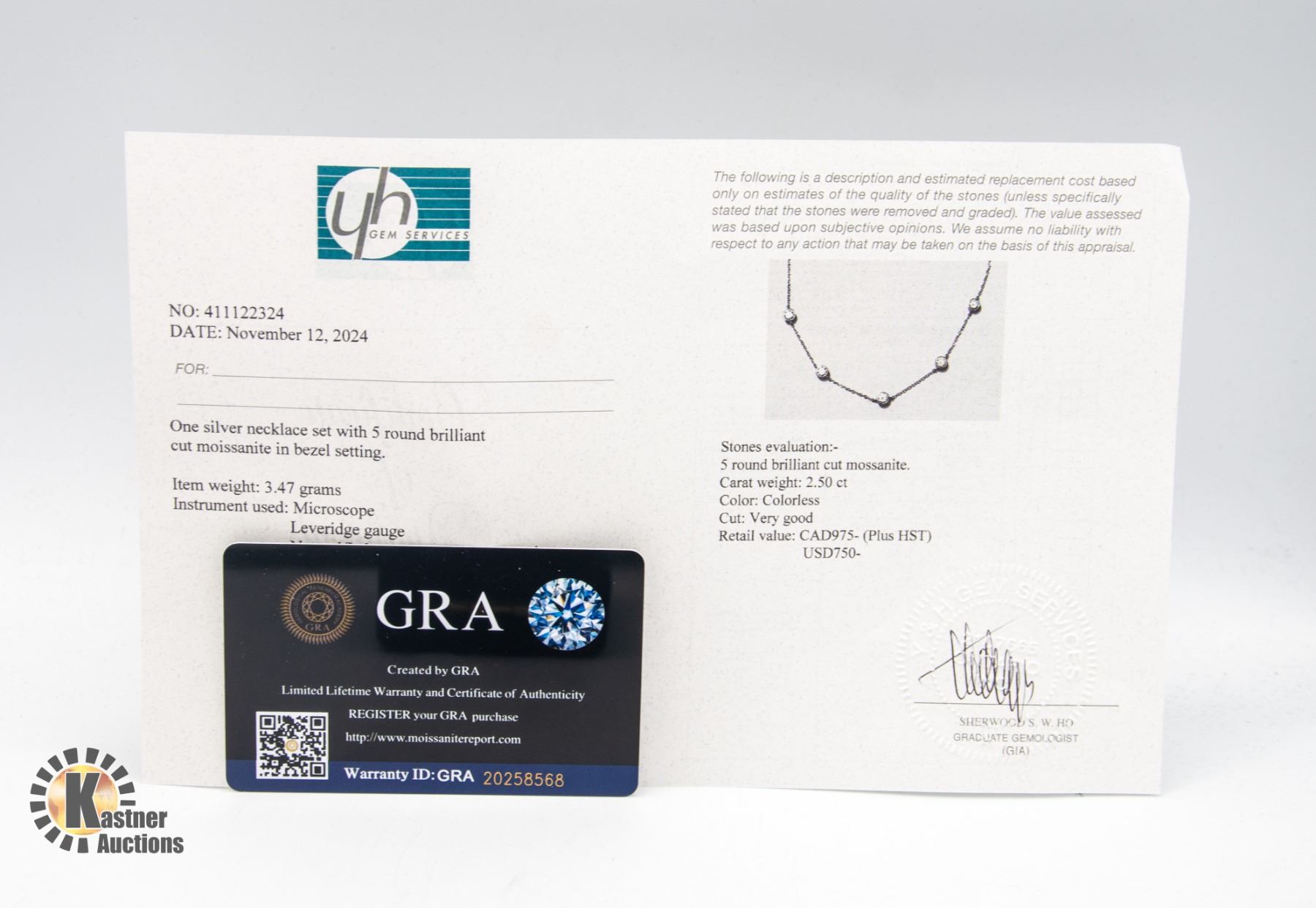 STONES VVS D COLOR WITH THE 5 MOISSANITE STONES BEZEL SET AND ATTACHED TO THE NECKLACE SET IN 925 SILVER PENDANT RETAIL VALUE $975.00