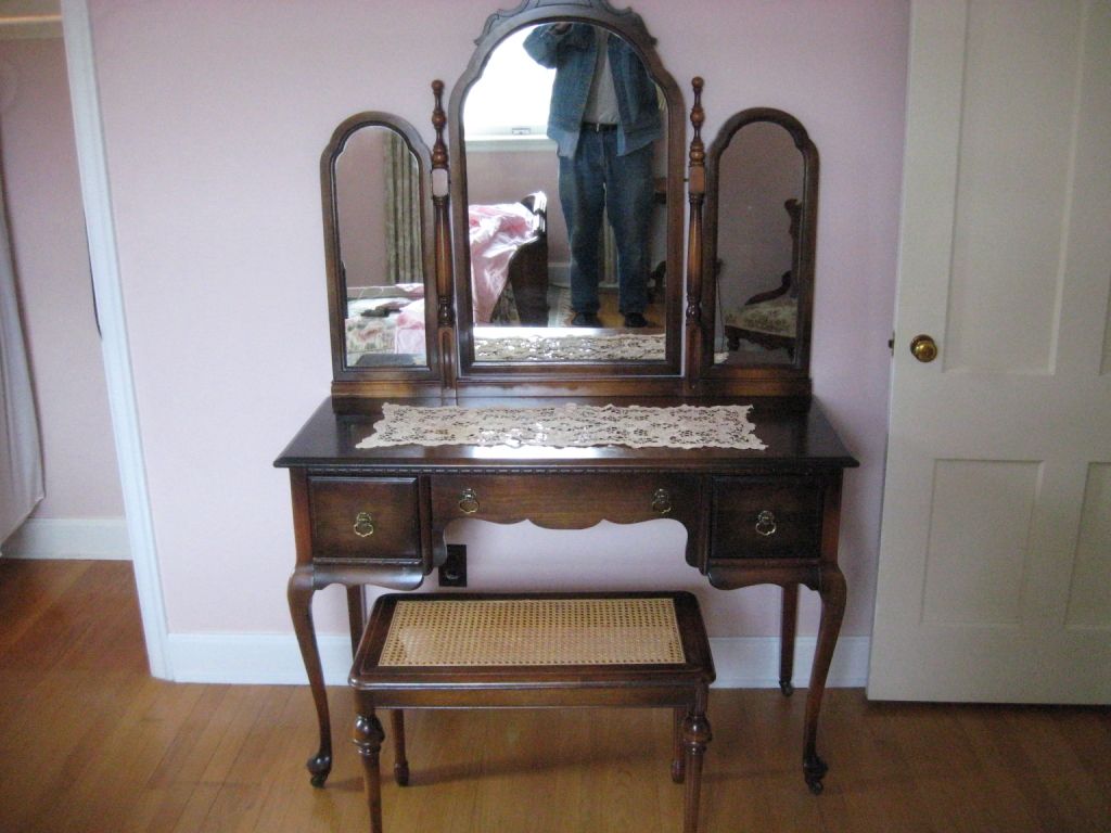 1081 - Walnut dressng table with 3 section mirror and matching benchmatching bench