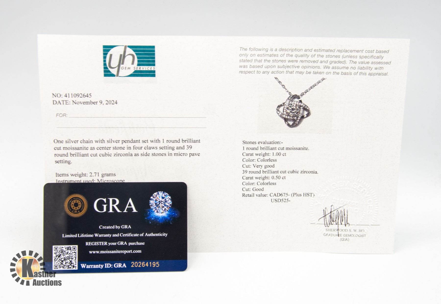 MOISSANITE STONE VVS D COLOR SURROUNDED BY DUAL OVAL HALO SET IN 925 SILVER PENDANT RETAIL VALUE $675.00 **ALL ITEMS MUST BE REMOVED BY 5PM SATURDAY, DECEMBER 7TH 2024. ALL REMAINING ITEMS WILL BE SUBJECT TO A $6.00 PER DAY STORAGE CHARGE. ANY ITEMS REMAINING AFTER MONDAY, DECEMBER 23RD 2024 WILL BE CONSIDERED FORFEITED. NO REFUNDS WILL BE ISSUED FOR FORFEITED ITEMS. TO SCHEDULE A PICK UP APPOINTMENT CLICK HERE
