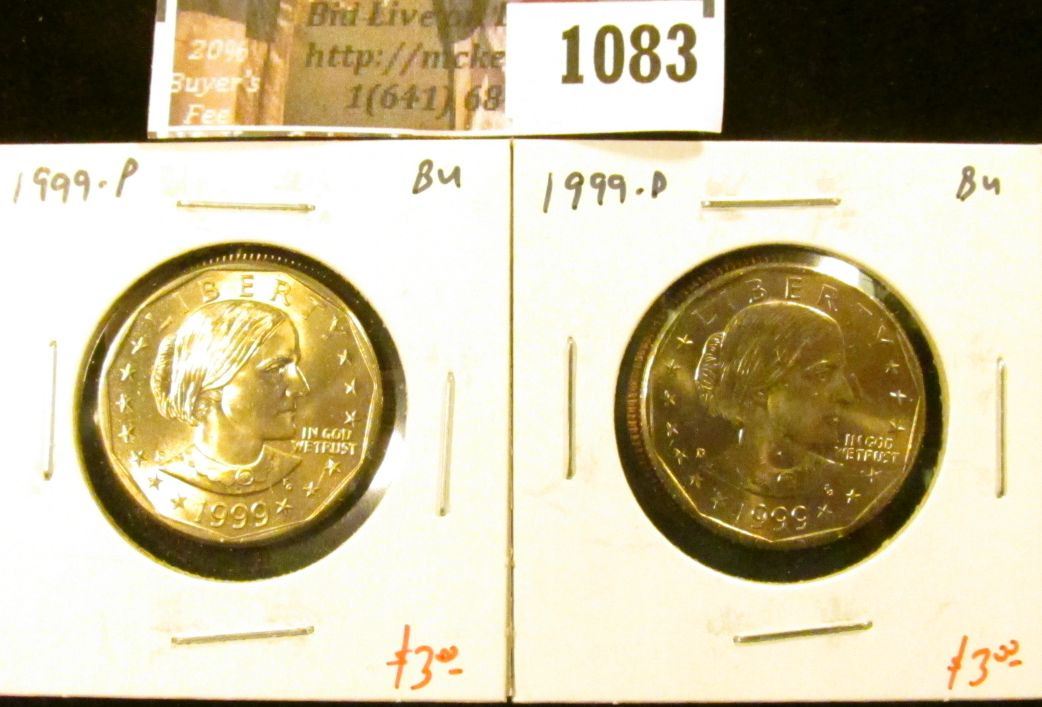 1083 . 1999-P & D Susan B. Anthony Dollars, BU, value for pair $6+