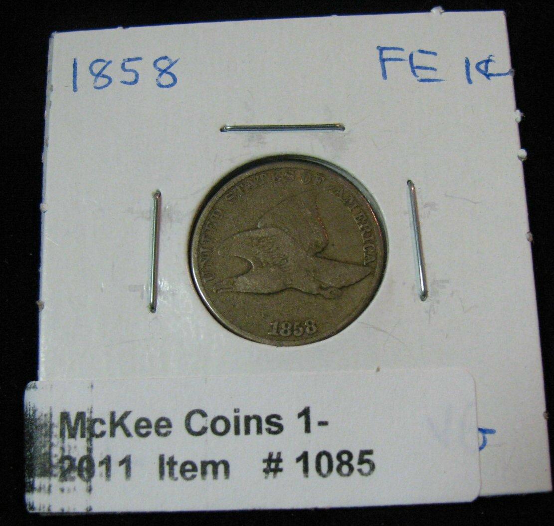 1085. 1858 Large Letters Flying Eagle Cent. VG-8.