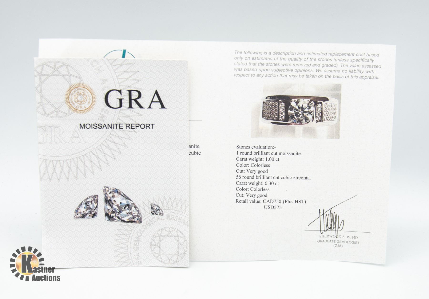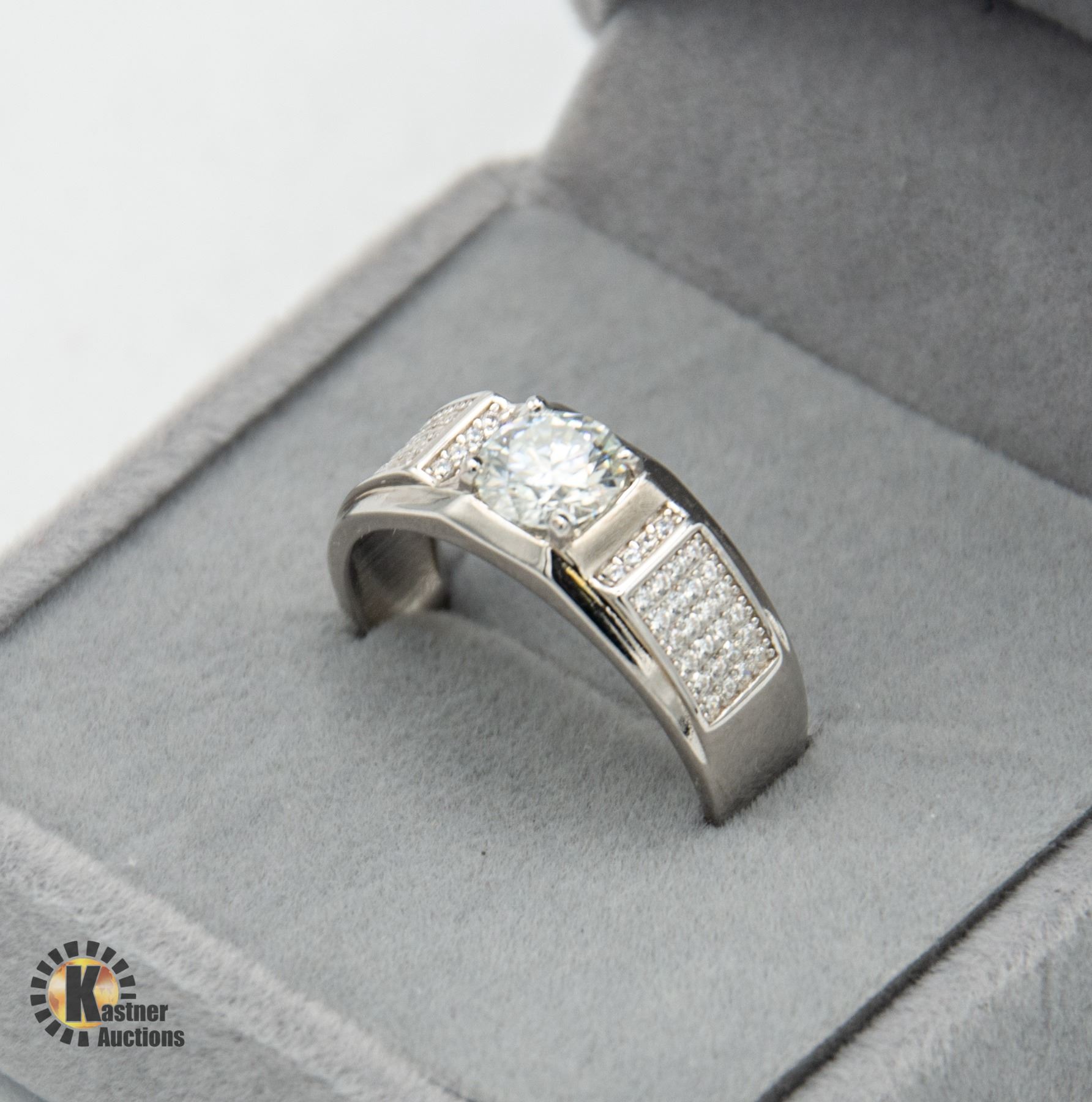 MOISSANITE STONE VVS D COLOR SET IN CENTER WITH 56 CZ’S SET ON EITHER SIDE SET IN 925 SILVER RING SIZE 10 RETAIL VALUE $750.00 **ALL ITEMS MUST BE REMOVED BY 5PM SATURDAY, NOVEMBER 30TH 2024. ALL REMAINING ITEMS WILL BE SUBJECT TO A $6.00 PER DAY STORAGE CHARGE. ANY ITEMS REMAINING AFTER MONDAY, DECEMBER 16TH 2024 WILL BE CONSIDERED FORFEITED. NO REFUNDS WILL BE ISSUED FOR FORFEITED ITEMS. TO SCHEDULE A PICK UP APPOINTMENT CLICK HERE