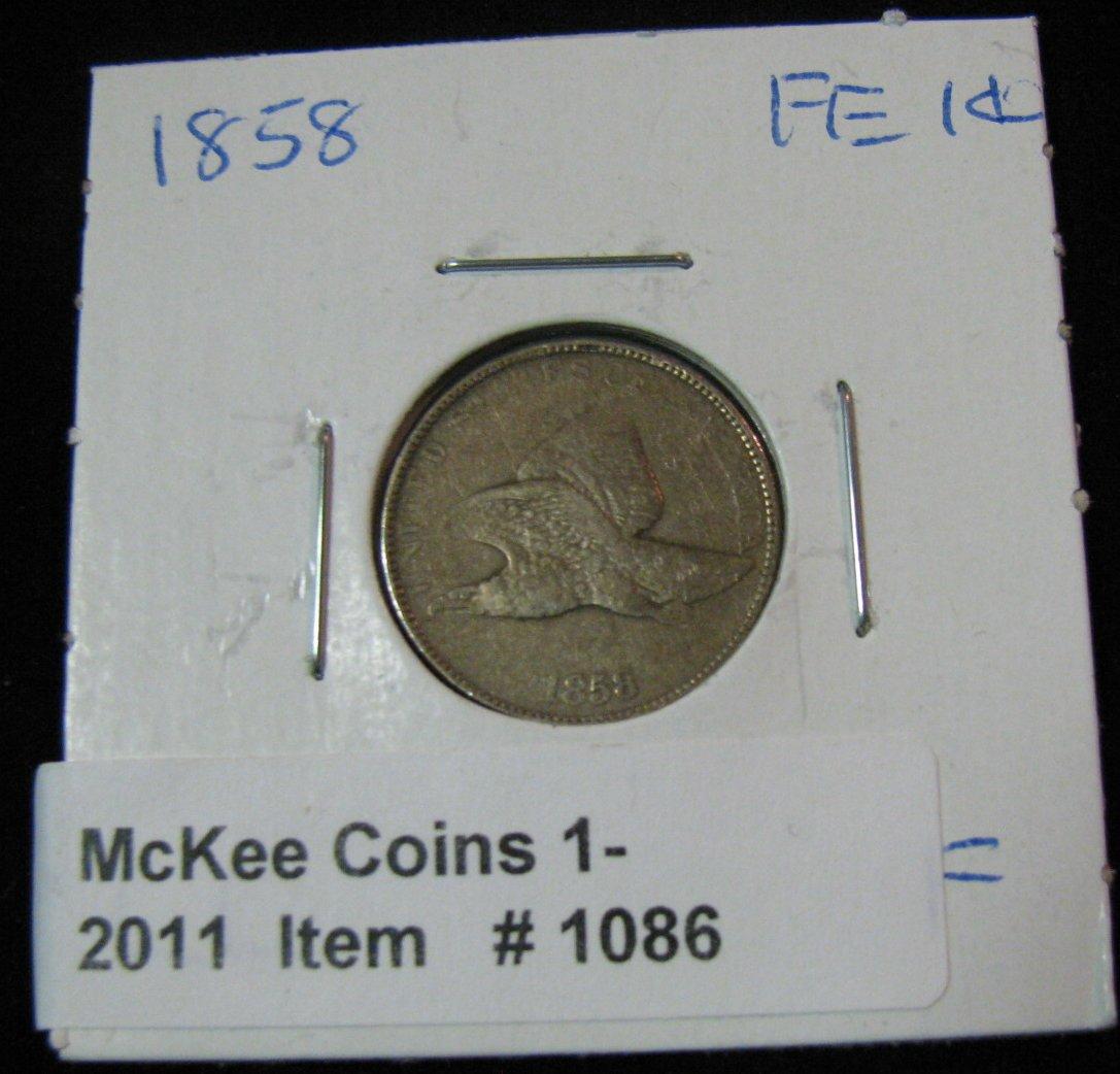 1086. 1858 Large Letters Flying Eagle Cent. F-12.