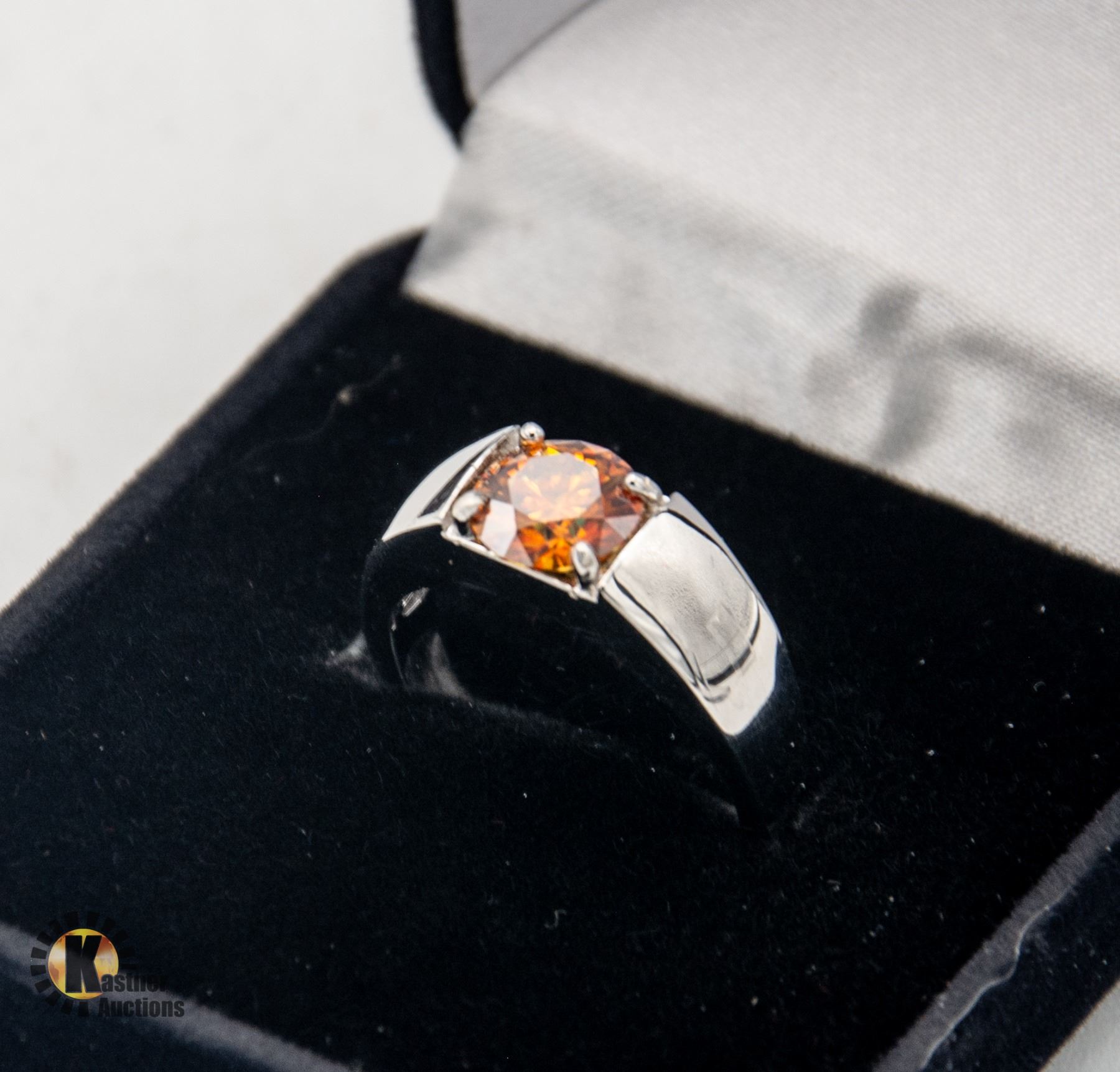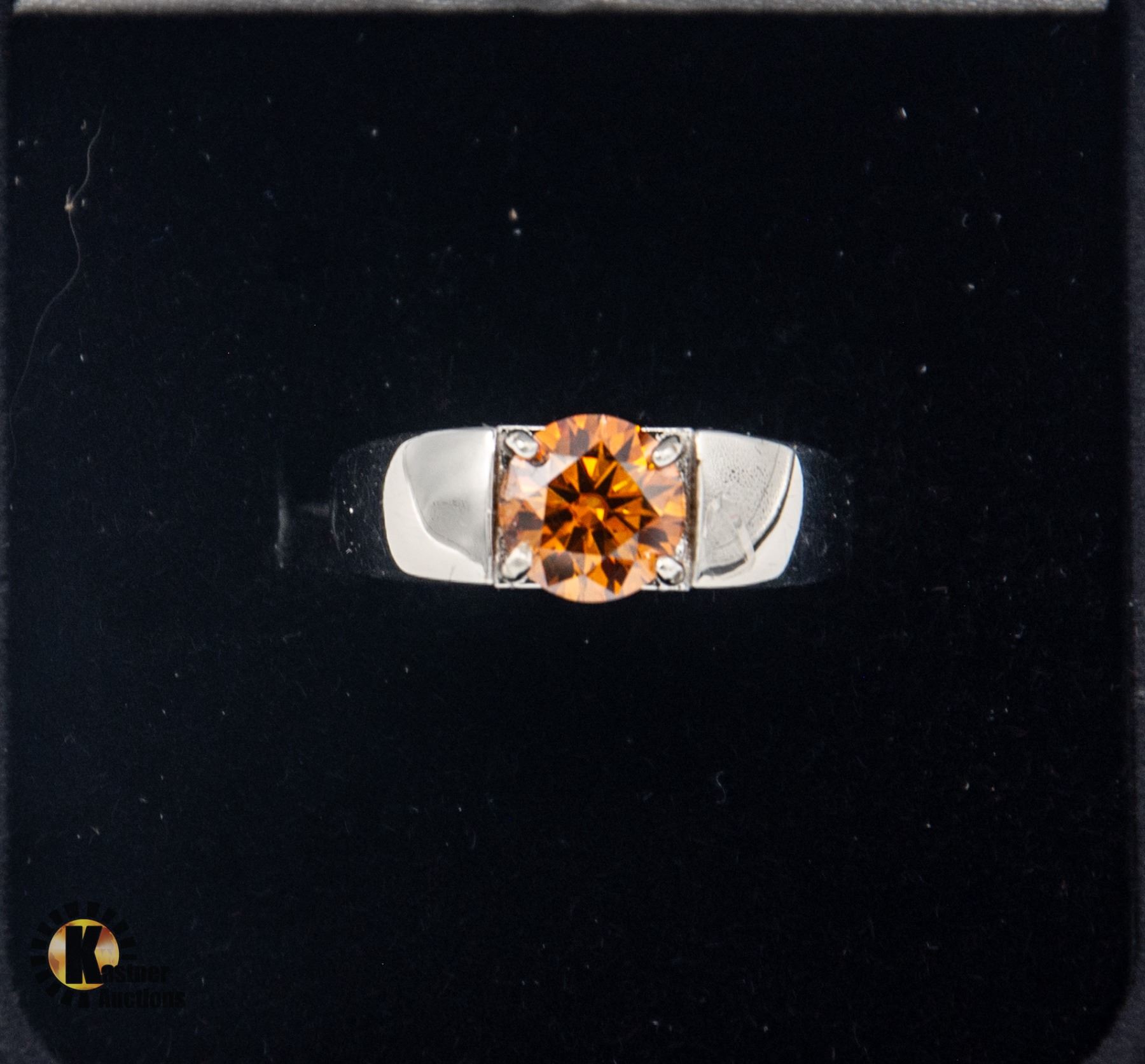 BRILLIANT CUT MOISSANITE STONE VVS ORANGE/CHAMPAGNE COLOR SET IN 925 SILVER RING SIZE ADJUSTABLE **ALL ITEMS MUST BE REMOVED BY 5PM SATURDAY, DECEMBER 7TH 2024. ALL REMAINING ITEMS WILL BE SUBJECT TO A $6.00 PER DAY STORAGE CHARGE. ANY ITEMS REMAINING AFTER MONDAY, DECEMBER 23RD 2024 WILL BE CONSIDERED FORFEITED. NO REFUNDS WILL BE ISSUED FOR FORFEITED ITEMS. TO SCHEDULE A PICK UP APPOINTMENT CLICK HERE