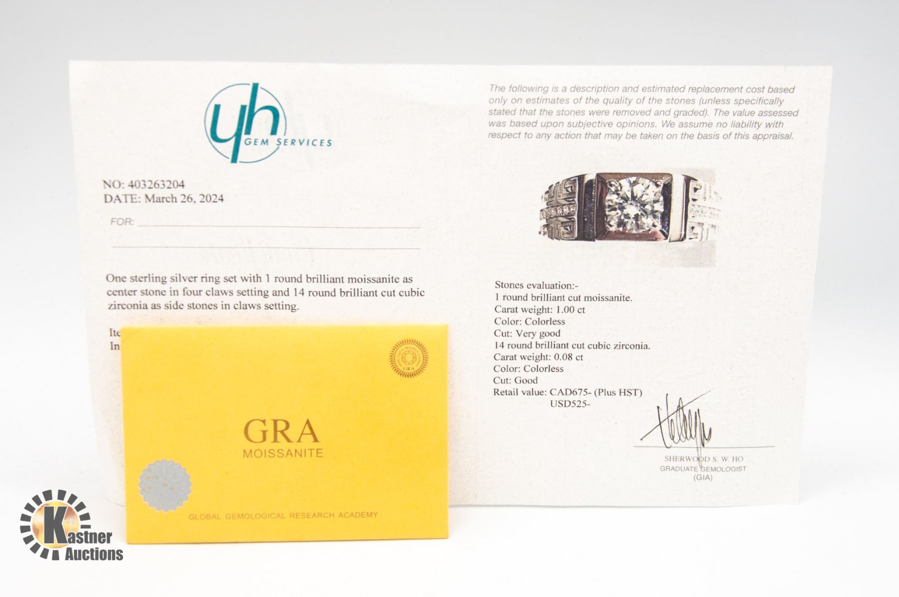 MOISSANITE STONE VVS D COLOR SET IN 925 SILVER RING SIZE ADJUSTABLE RETAIL VALUE $675.00 **ALL ITEMS MUST BE REMOVED BY 5PM SATURDAY, DECEMBER 7TH 2024. ALL REMAINING ITEMS WILL BE SUBJECT TO A $6.00 PER DAY STORAGE CHARGE. ANY ITEMS REMAINING AFTER MONDAY, DECEMBER 23RD 2024 WILL BE CONSIDERED FORFEITED. NO REFUNDS WILL BE ISSUED FOR FORFEITED ITEMS. TO SCHEDULE A PICK UP APPOINTMENT CLICK HERE