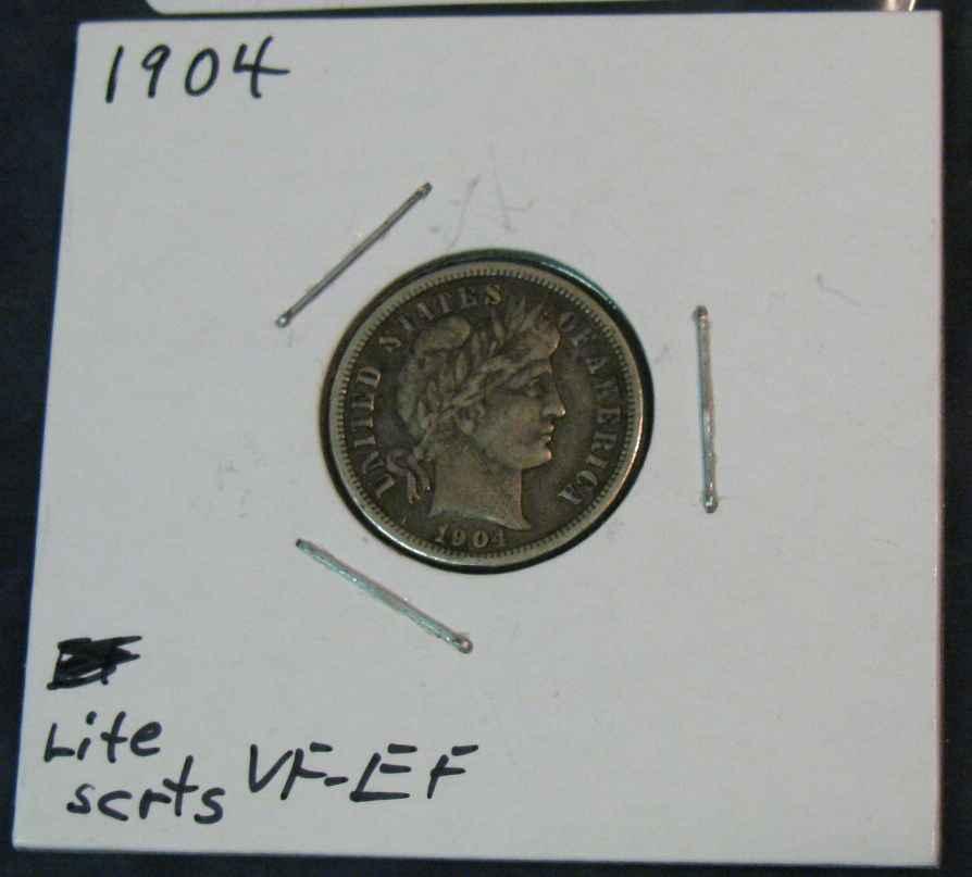 1091. 1904 Barber Dime. VF-EF. Obverse Scratches.