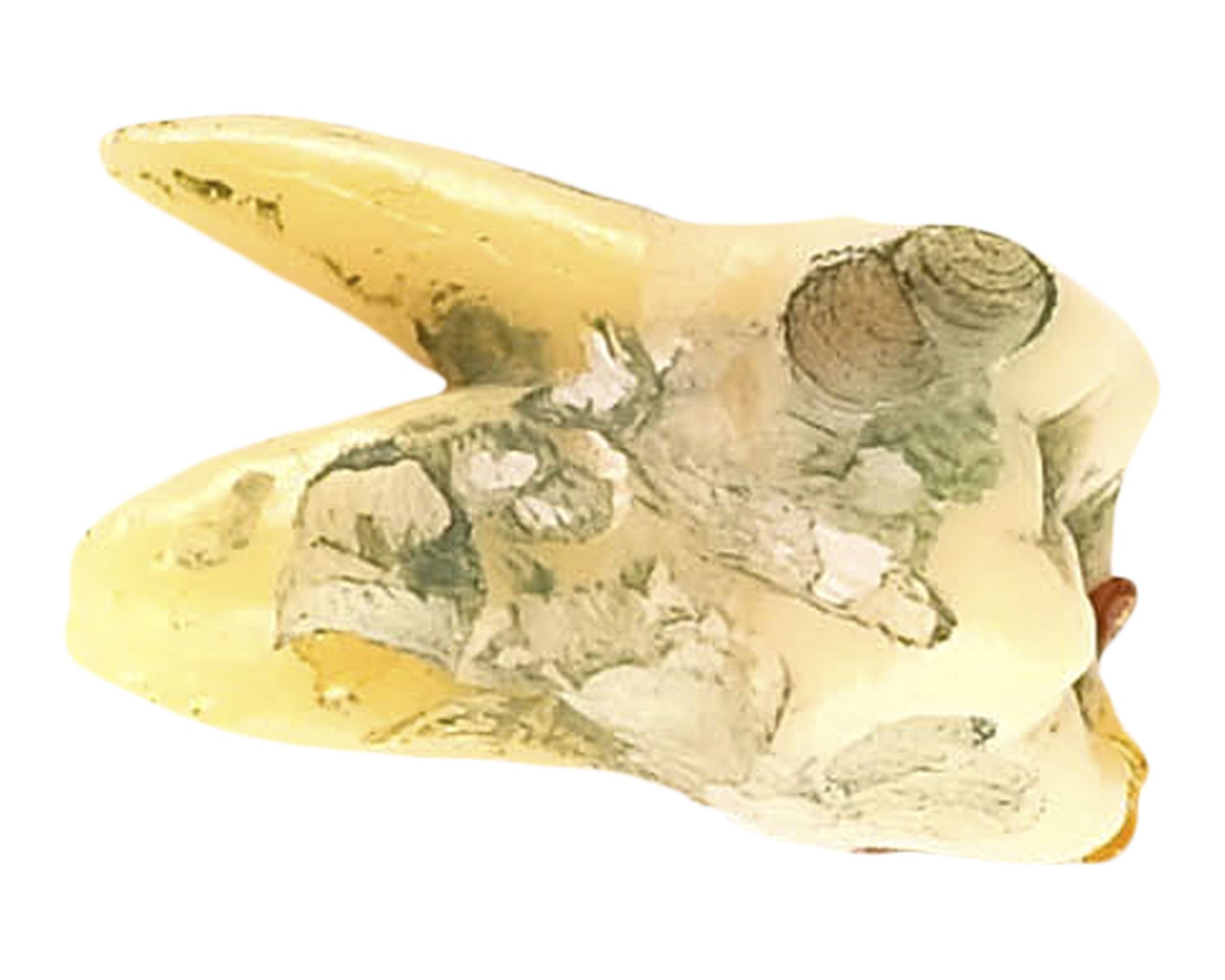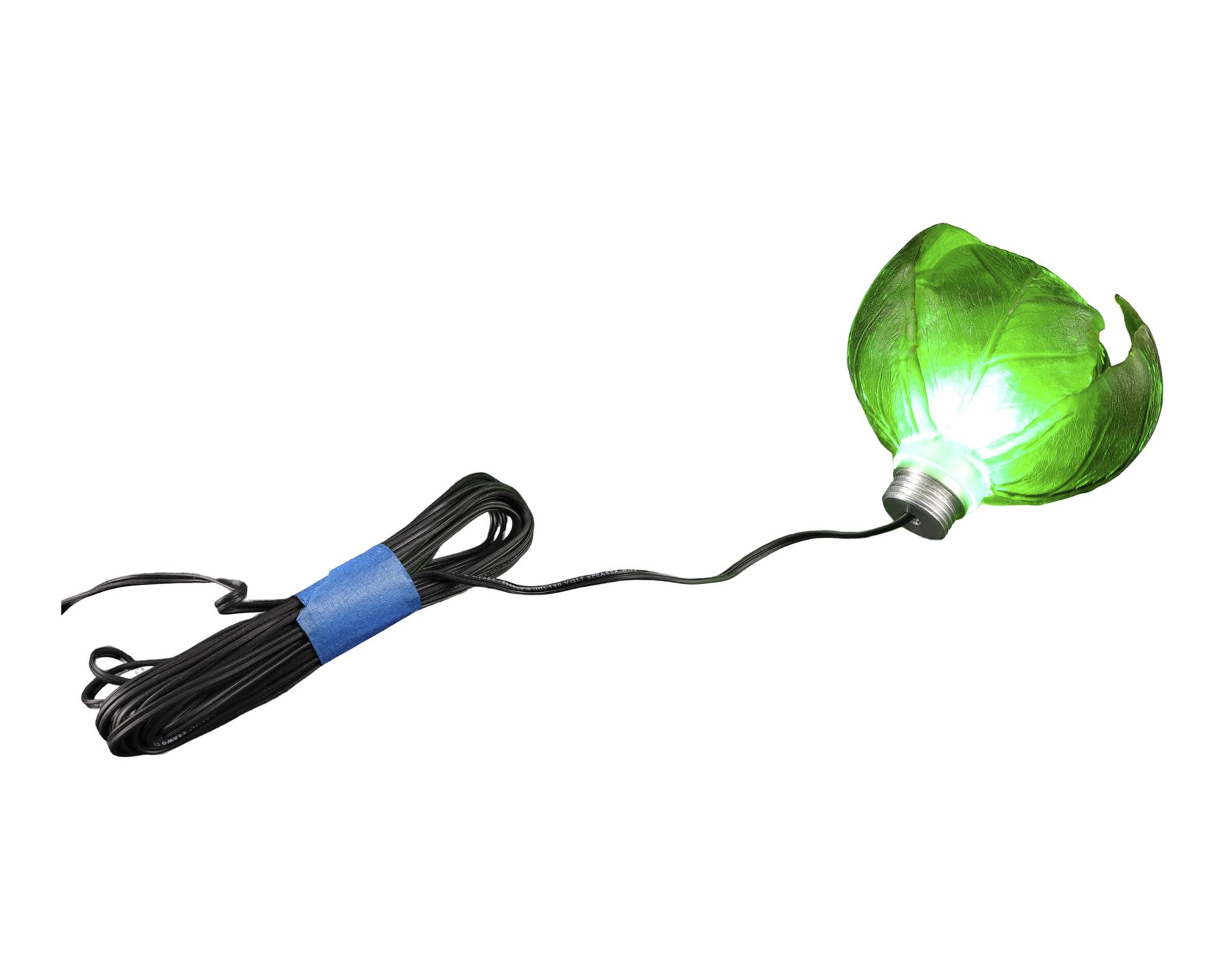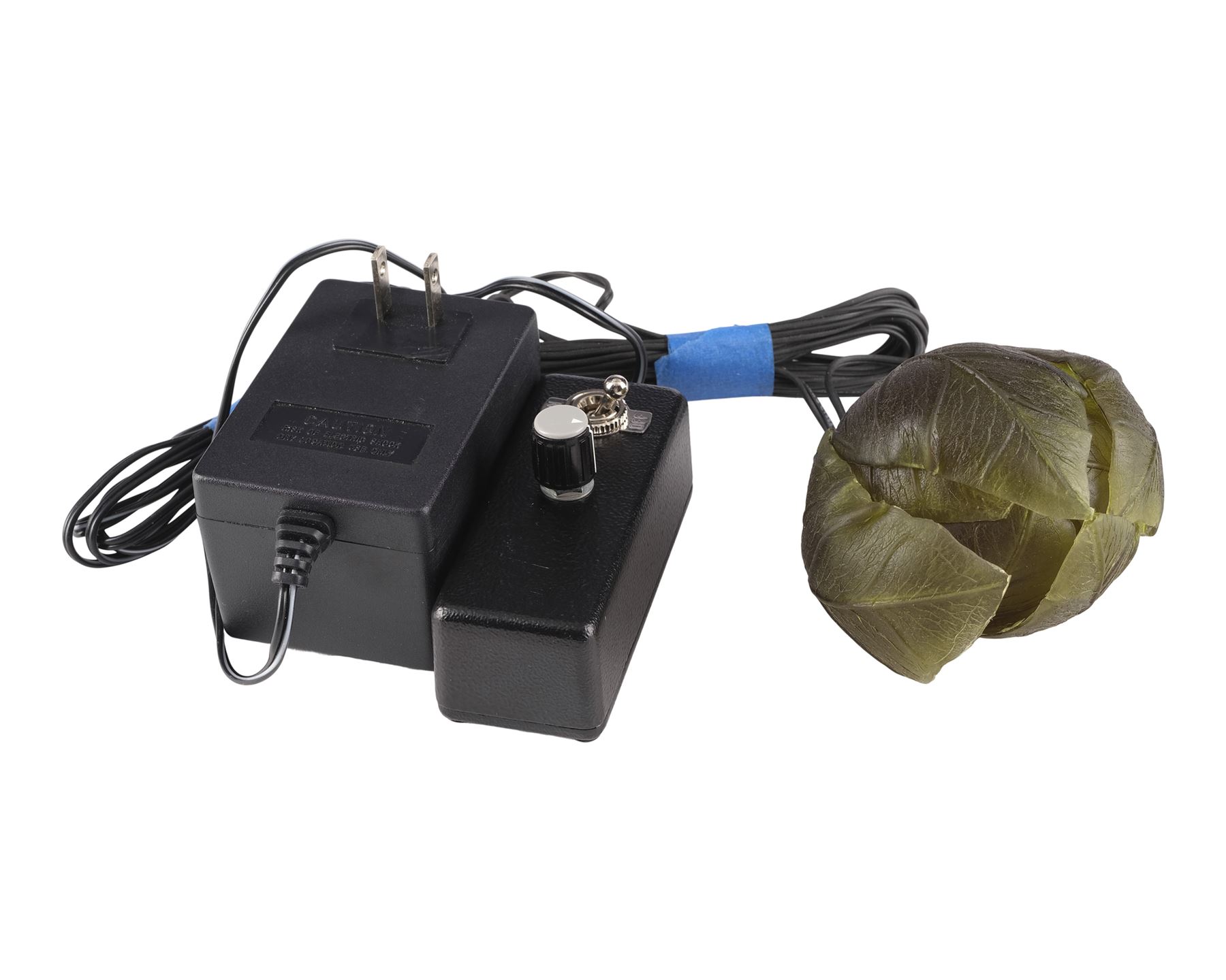 This lot consists of a resin molar tooth colored to appear rotted; and a green translucent silicone plant with a clear acrylic base and a metal light-up bulb and connection adapter. This lot lights up when the bulb is placed within the acrylic base and the switch on the adapter and controlled by a dimmer. This lot exhibits minor grime on the plant. Dimensions: (largest) 6" x 7" x 2" (15.25 cm x 18 cm x 5 cm)
