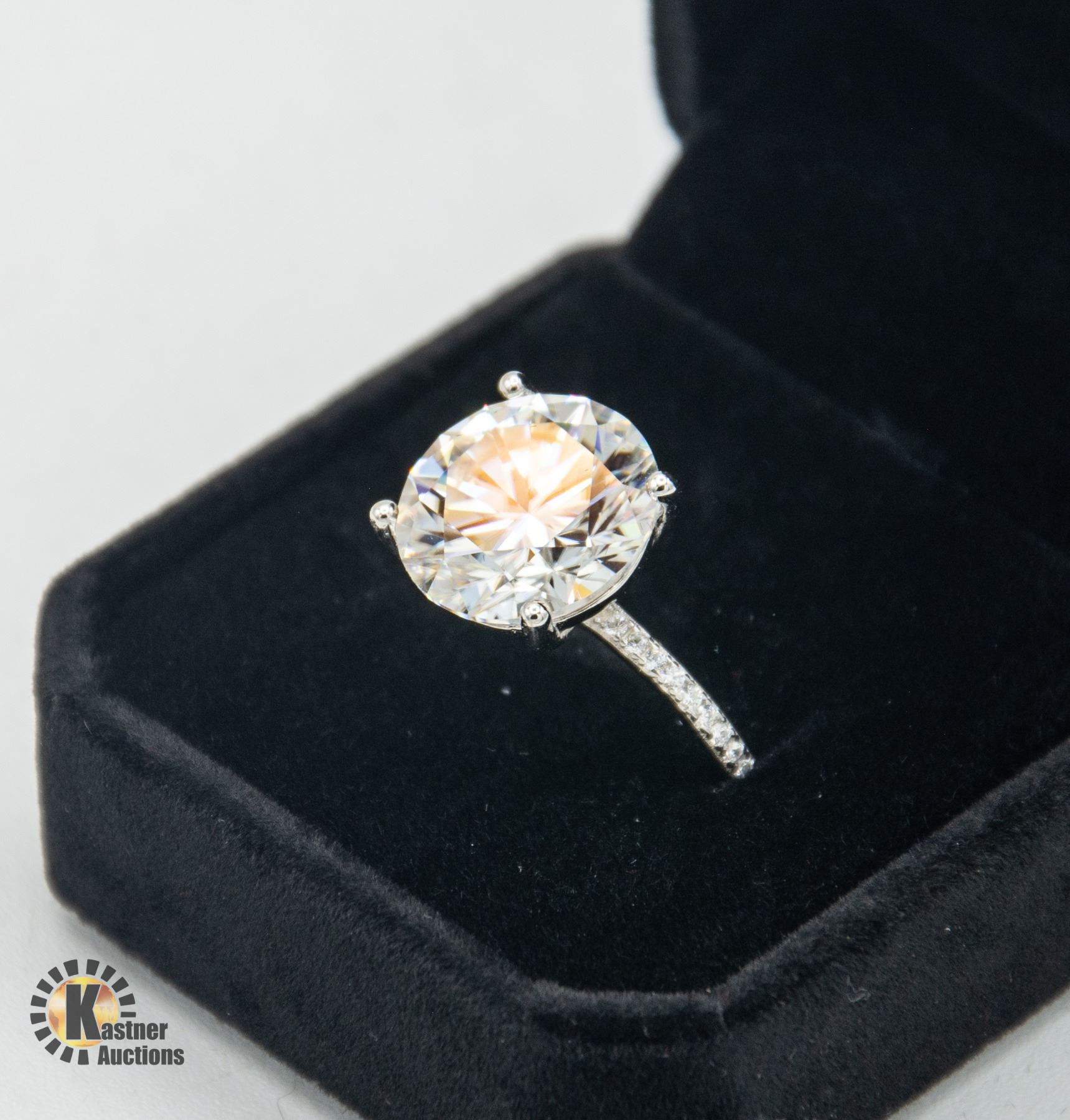 MOISSANITE STONE VVS D COLOR SET IN CENTER WITH 18 ROUND CUT CUBIC ZIRCONIUM SET IN 925 SILVER RING SIZE 7 **ALL ITEMS MUST BE REMOVED BY 5PM SATURDAY, NOVEMBER 30TH 2024. ALL REMAINING ITEMS WILL BE SUBJECT TO A $6.00 PER DAY STORAGE CHARGE. ANY ITEMS REMAINING AFTER MONDAY, DECEMBER 16TH 2024 WILL BE CONSIDERED FORFEITED. NO REFUNDS WILL BE ISSUED FOR FORFEITED ITEMS. TO SCHEDULE A PICK UP APPOINTMENT CLICK HERE