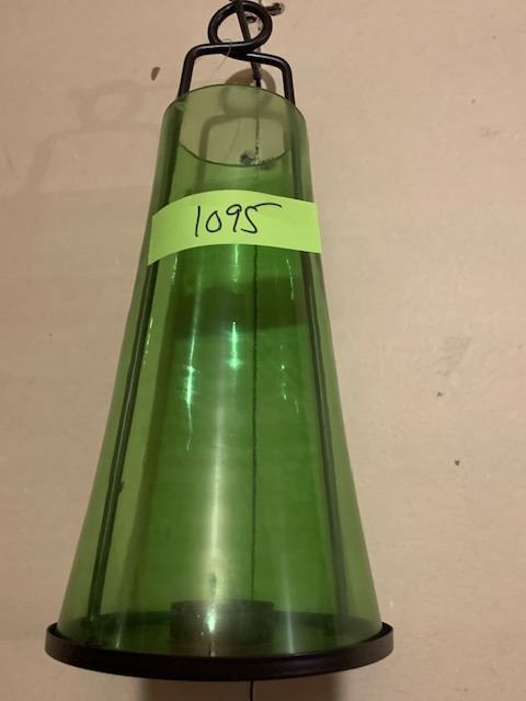 1095 GREEN GLASS CANDLE LANTERN HOLDER