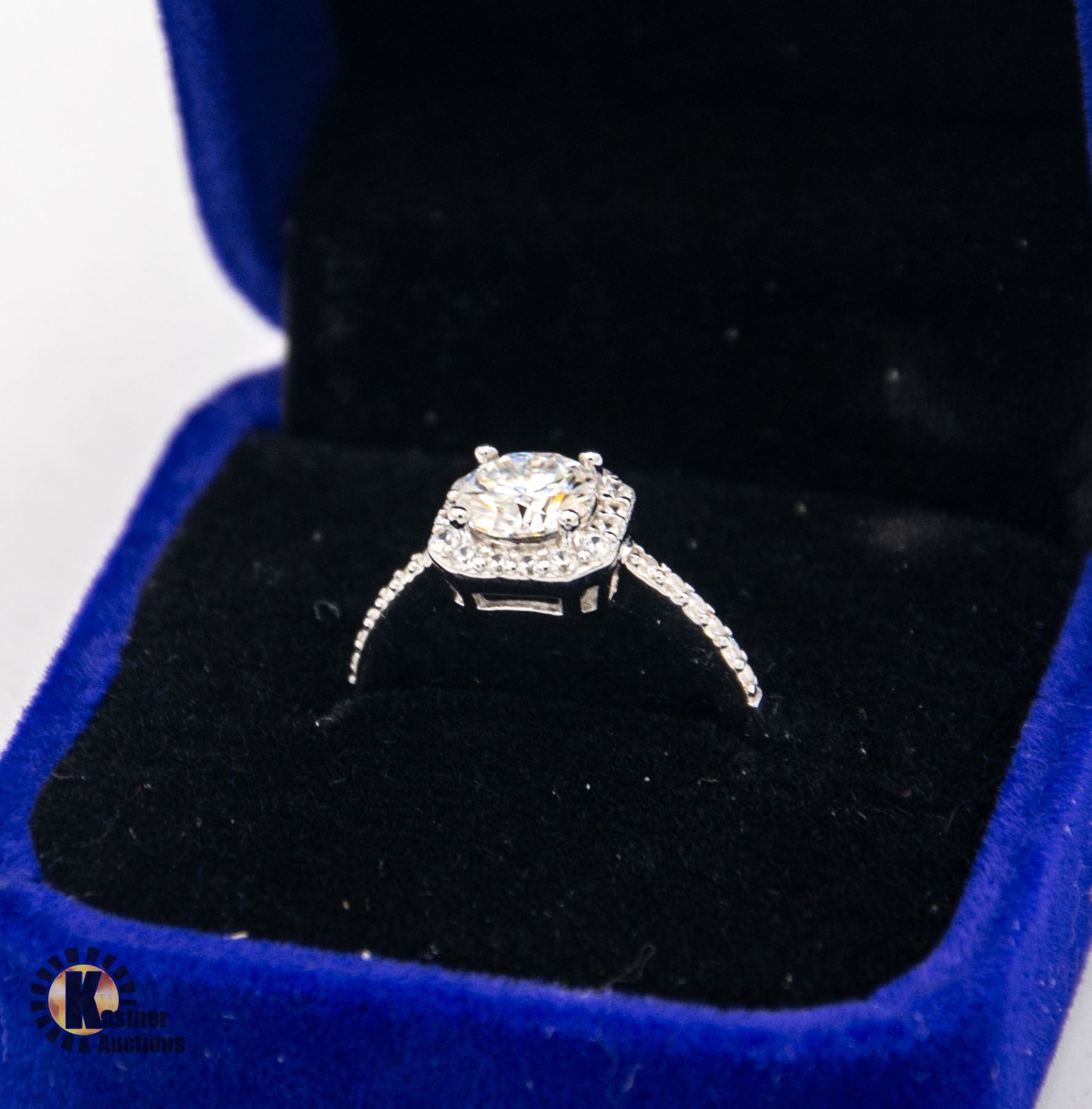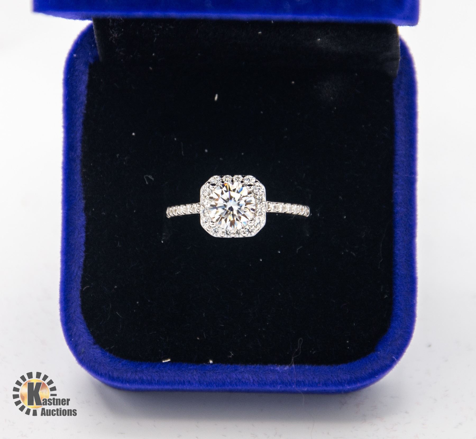 MOISSANITE STONE VVS D COLOR SET IN CENTER OF SQUARE HALO SET IN 925 SILVER RING SIZE 6