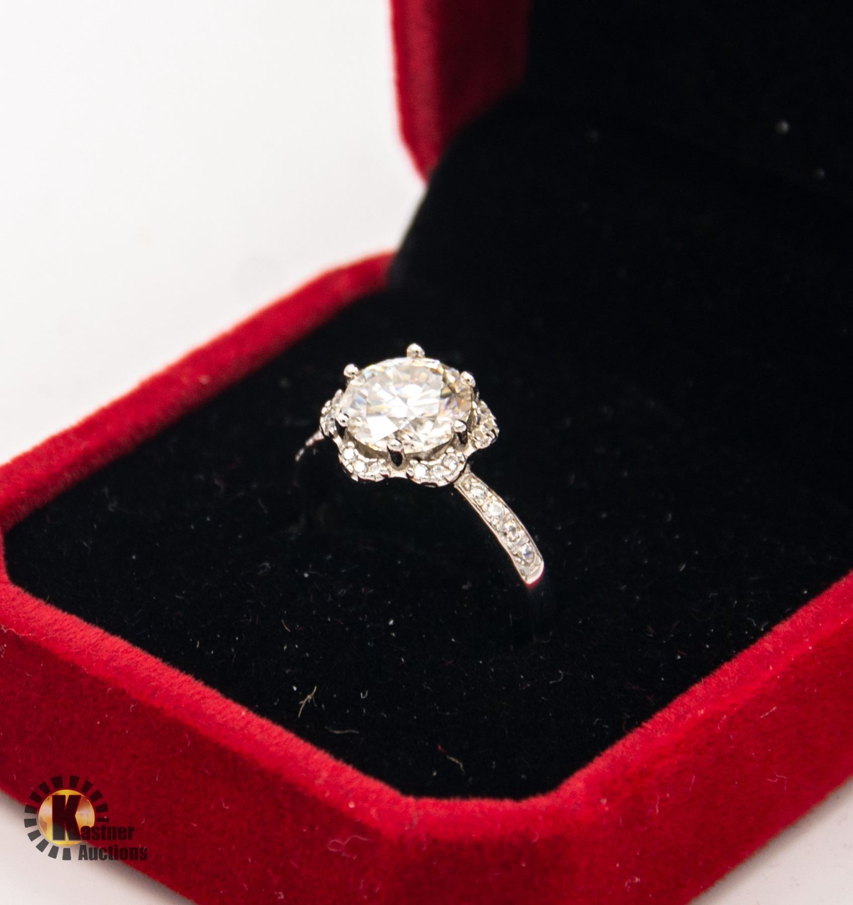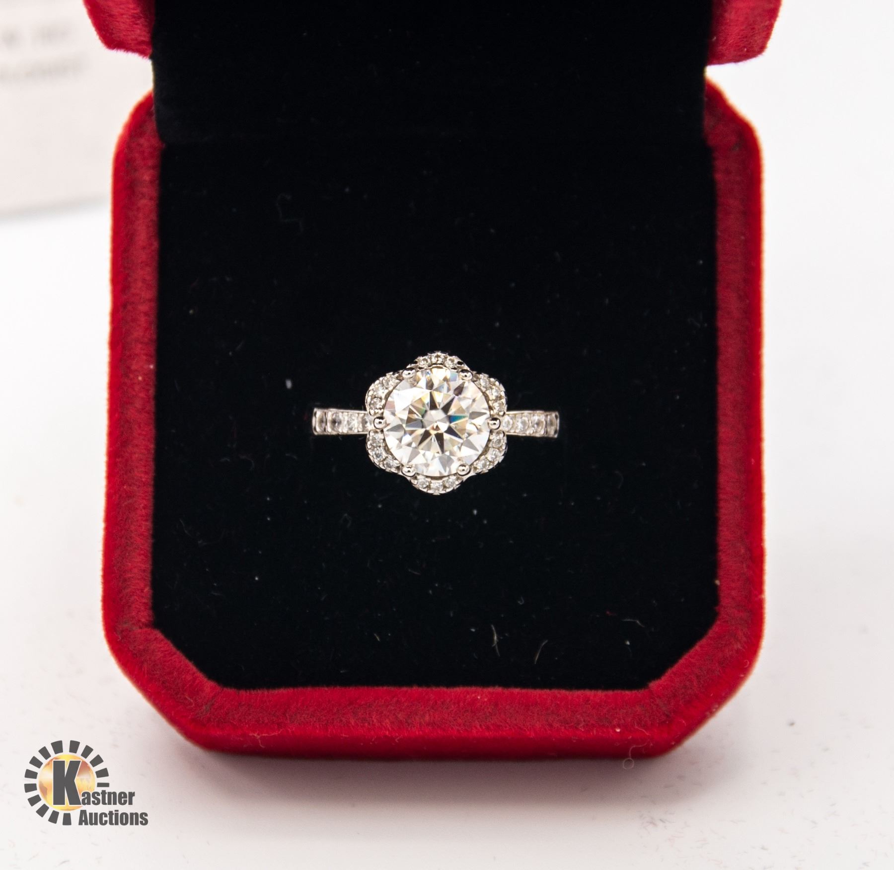 ROUND BRILLIANT CUT MOISSANITE STONE VVS D COLOR SET IN 925 SILVER RING SIZE ADJUSTABLE