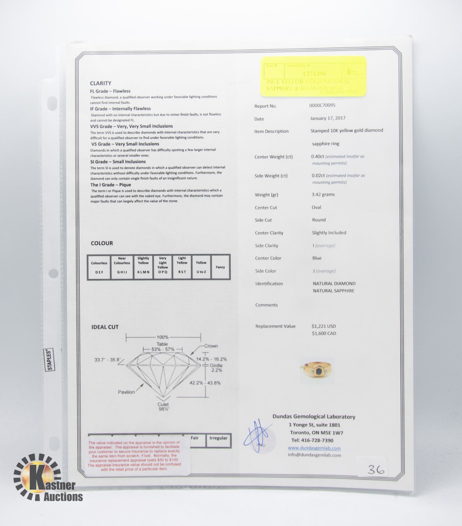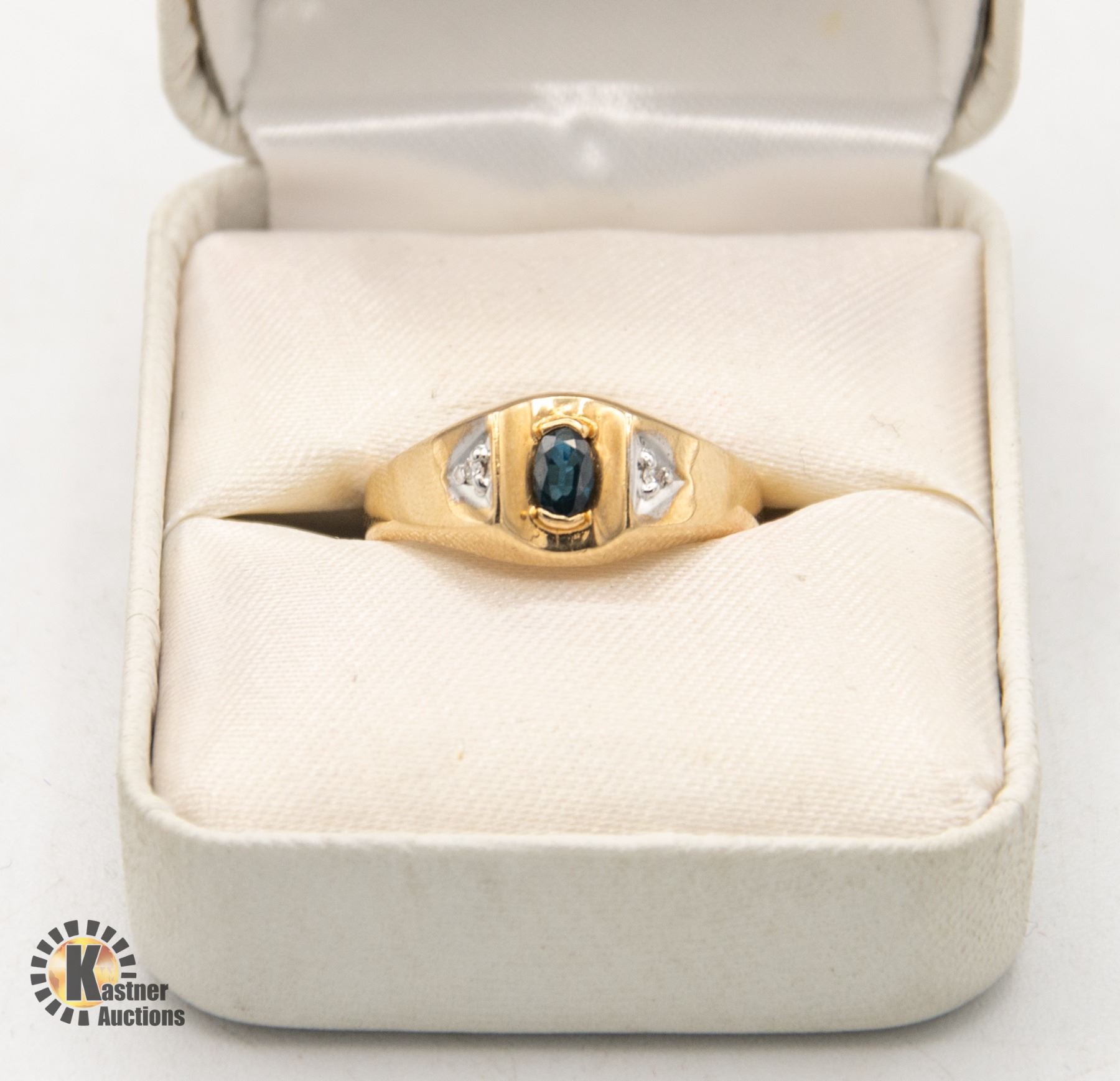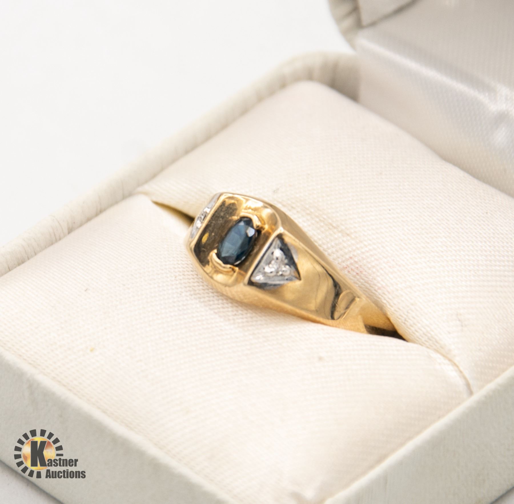 10CT YELLOW GOLD NATURAL SAPPHIRE & DIAMOND RING