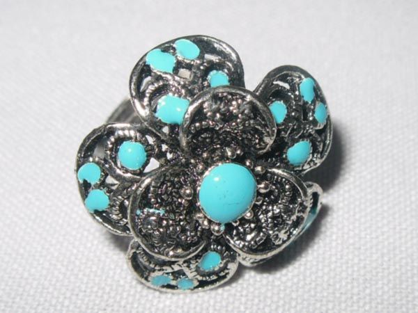 10CTW TEAL FLOWER BRASS ADJUSTABLE RING **|**|** 10CTW TEAL FLOWER BRASS ADJUSTABLE RING ; MSRP: $150
